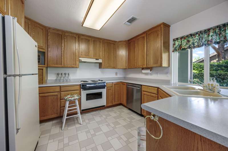 Gated Alder Creek West Subdivision w/1 level home, with lots of new updates including granite counters, appliances and some flooring! Stucco exterior, tile roof and landscaping maintenance included. Very popular floor plan w/3 bedrooms and 2 good size bathrooms w/skylights. Great rm w/vaulted ceilings and dining rm. Kitchen w/corner sink, many cabinets and pantry cabinets. Lg primary suite w/slider to covered patio, dbl sinks, lg shower and walk in closet. 2 guest bedrooms, one w/French doors off great rm/entry way. 2 car finished garage w/extra storage. Backyard is very private w/lg covered patio and private hedges and nice landscaping in a Cul-De-Sac location. Close to great restaurants, golf course, medical and walking trails and parks.