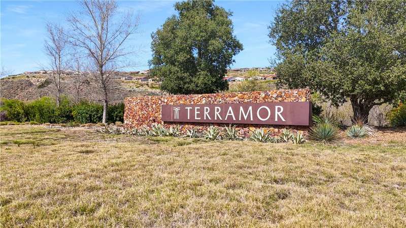 VIEWS,VIEWS, VIEWS from ever room, this highly upgraded home is located in the exclusive 55+ guard gated community of Terramor. It features one of the LARGEST low maintenance lots in the community, IS PRIVATE and is big enough to add a pool and more. It includes 2 bedrooms, plus an office/den that was a (builders) option to be a 3rd bedroom. The open kitchen offers custom quartz countertops, builder upgraded wood cabinets with additional cabinetry, custom hardware, and pendant lighting. The kitchen is adjacent to the large living/family room area which features a fireplace and builder upgraded full-opening sliding doors that open to a California room for covered outdoor seating. The oversized primary bedroom features a large walk-in-closet with organizers from California closets, including a custom shoe rack. The bathrooms offer upgraded wood cabinets, quartz countertops, and custom hardware. There is a mudroom going out to the garage that offers a custom upholstered bench. Additional interior special features include SELLER OWNED TESLA SOLAR panels and system, luxury vinyl plank flooring, central Wi-fi panel, upgraded TV wiring and USB ports in kitchen and office. The two-car garage offers a 220 outlet for an EV charger. The yard has been professionally landscaped with a Mediterranean feel with custom lighting with timer, and custom cement treatment on pathways and outdoor seating areas. It also features a programmable drip system irrigation. Other outdoor features include, rain gutters, side vinyl fencing, extra wide side yards, lighted gazebo, lighted fountain, gas firepit and custom rock veneer on the front exterior. The community offers resort-style amenities that are five-star inspired. It offers a variety of amenities, including a conference/event space where residents can book private parties or enjoy community gatherings, outdoor and indoor pool, spa, barbecue and game area, crafts room, Pavilion with a bar, hiking trails, tennis and pickleball, gym/exercise room; there are also many activities to do during the week, from yoga, wine tasting, pottery and painting classes, to entertainment and comedy shows. This model perfect home is your gateway to a lifestyle filled with relaxation, recreation and community connection.