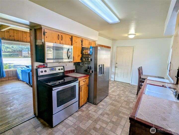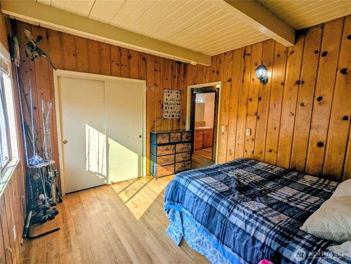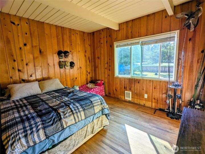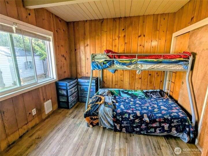 Your 1st home starts here. Located within walking distance of schools, library, on transit route, your easy life begins at this affordable 2 bedrooms and 1 full bath home with plenty of parking, space for RV, garden, and a fully fenced backyard w storage shed. Bring your critters and your hobbies too as there is no HOA. This home offers a cabin feeling in the heart of town with wood floors and vaulted ceilings with a cozy wood burning fireplace or enjoy the Ductless Mini split for all seasons. Updated windows and covered backyard patio for evening BBQs. Why rent when you can live the relaxed life while owning your home.