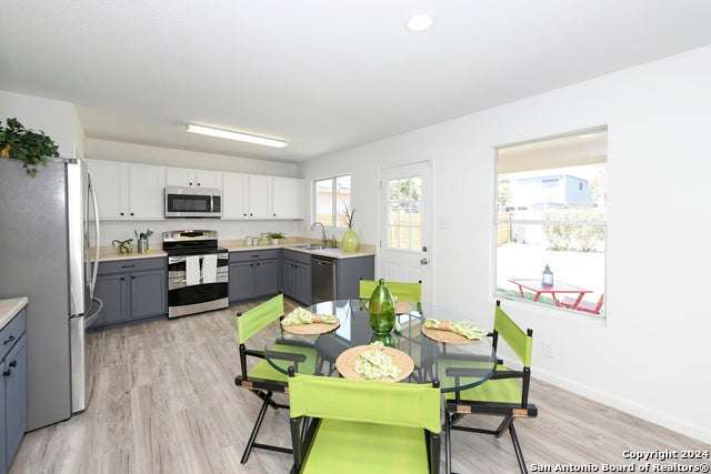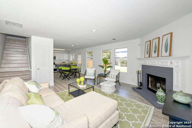 This newly renovated, move-in ready two-story home in the highly sought-after North Side School District is an opportunity you can't let go! With new flooring throughout and a fresh, modern feel, this home will instantly captivate you. Featuring three separate living spaces, there's plenty of room to spread out and grow. Imagine hosting in the formal dining and living space at the front of the house, enjoying meals in the open kitchen and living room at the back, and relaxing in the upstairs family room. The living room is bathed in natural light during the day, and at night, the wood-burning fireplace creates a warm and cozy ambiance. You'll love the covered back patio and front porch, perfect for enjoying the outdoors year-round. The landscaped front yard adds to the home's charm. Located just minutes from the vibrant Alamo Ranch area, close to Lackland Air Force Base, and near local soccer fields, this home has it all. The Silver Oaks community offers walking and bike trails, a community park, and easy access to all major shopping nearby. With several restaurant choices just around the corner, you'll never run out of options. Don't miss out on this incredible opportunity-schedule your showing today and make this stunning home yours.