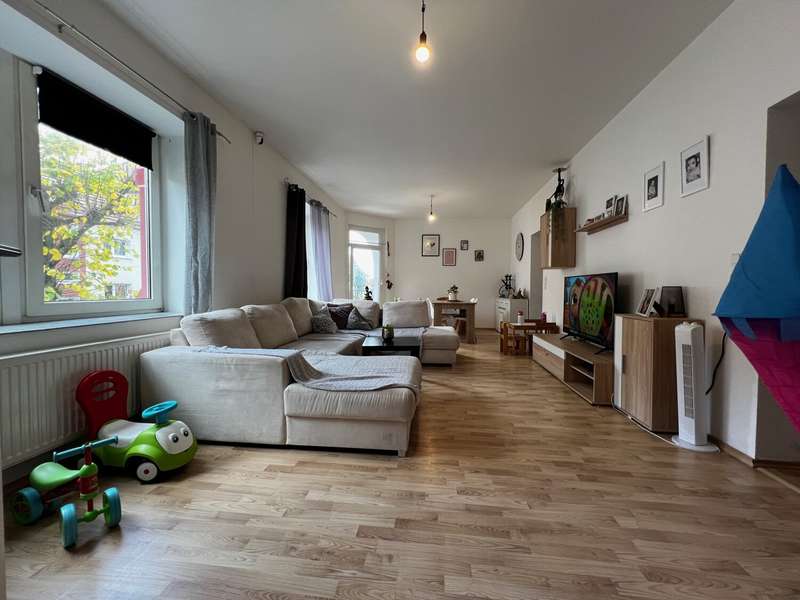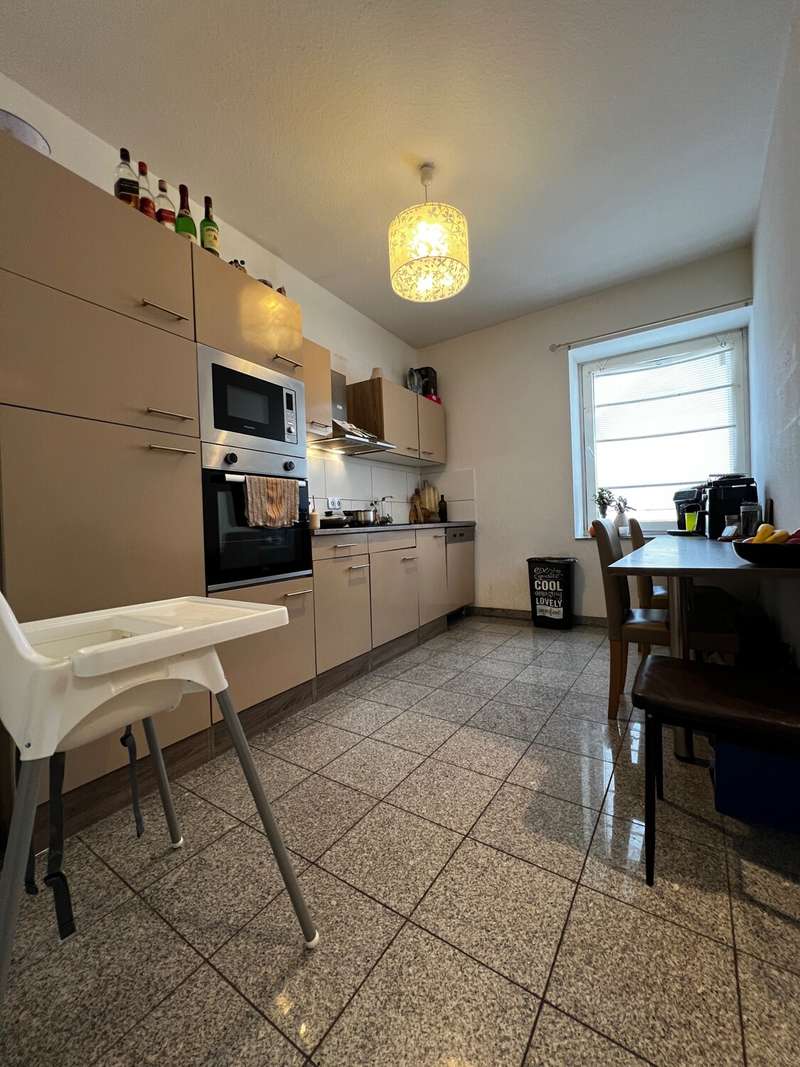 We rent out a spacious 3-room apartment. The apartment is located on the 3rd floor of a pretty 6-party house near Lüdenscheid city center. The apartment is ready to move into and can be rented immediately. The photos here show the currently empty rooms as well as the same rooms furnished with KI, so that you can better imagine the coziness. A communal garden is available to all tenants. Heating is provided by a pellet boiler. The kitchen is already tiled in white - the tenant would have to install a kitchen himself. The bathroom is also tiled in timeless white and has a great corner bathtub. Small pets (e.g. cat / bird / hamster / etc.) are allowed. Please only non-smokers and max. 4 persons.