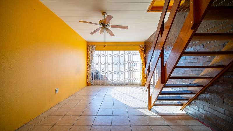 This unit is conveniently located close to shops and major highways - It has lots of potential and comprises of a spacious open plan lounge and dining area, and a kitchen (in need of TLC) with built in cupboards. A door from the lounge leads out to small enclosed area with a built in braai. Upstairs is where you will find 2 good sized bedrooms with built in cupboards and 1 bathroom with bath, hand shower, toilet and basin. This unit has 1 parking bay and is well secured. This unit is in need of some attention and can be transformed to it's natural beauty!!