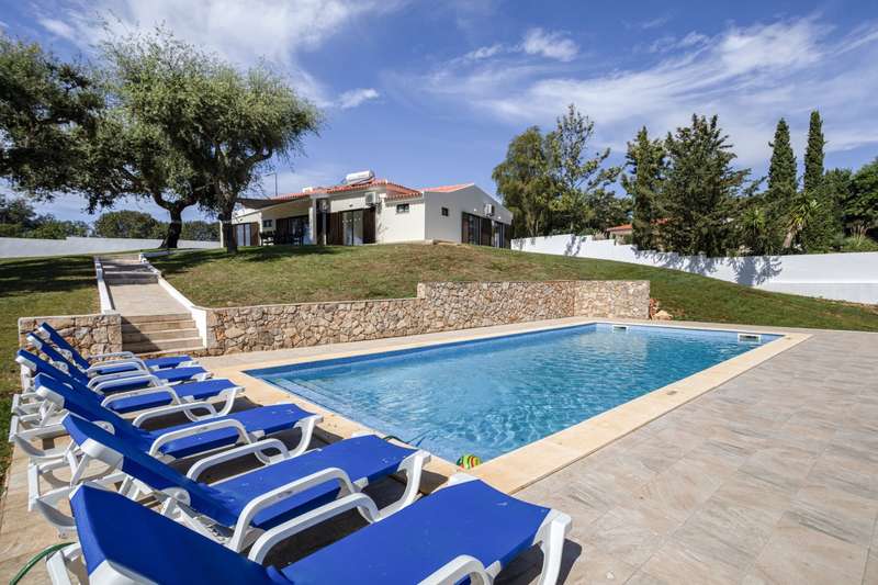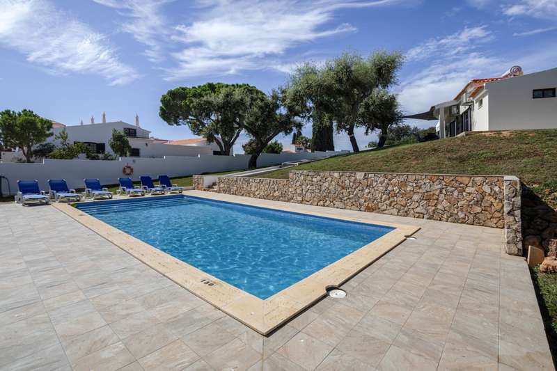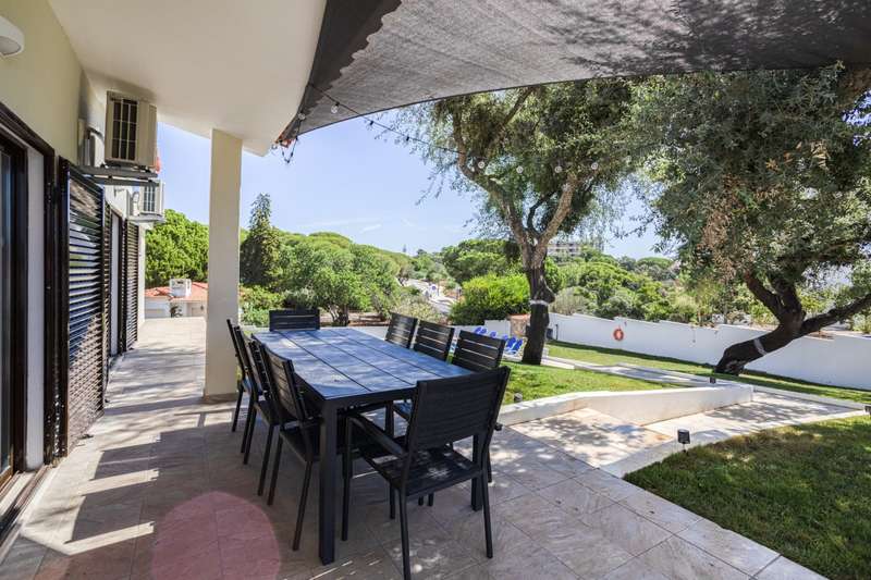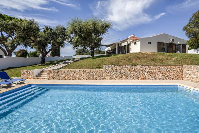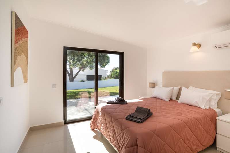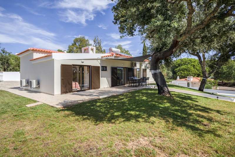 Stunning traditional style villa with four bedrooms, completely renovated and modernized, for sale in Albufeira, Algarve. Spread over a single floor and composed of a large and bright living and dining room, a fully equipped kitchen with an adjoining laundry room, four bedrooms, all en suite, and making a total of five bathrooms. The bedrooms are south facing, allowing for excellent sun exposure, and all of them have direct access to the outdoor space and the pool area. With a generous outdoor area, with garden, pool and outdoor dining area. The house is located in a quiet urbanization, less than 5 minutes from the beach, a few minutes from all kinds of amenities and services and only 40 minutes from Faro International Airport. CHARACTERISTICS: Plot Area: 1 404 m2 | 15 113 sq ft Area: 210 m2 | 2 260 sq ft Building Area: 210 m2 | 2 260 sq ft Bedrooms: 4 Bathrooms: 5 Energy efficiency: E FEATURES: Four suites Kitchen equipped with Bosh equipment Solar panels Laundry Swimming pool Closed garage Air conditioning Automatic gate Irrigation system
