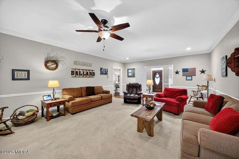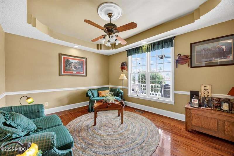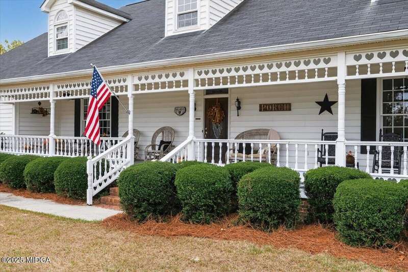 Country living at its best, one owner, custom-built home on 6 acres in Lizella. Four spacious bedrooms, four bathrooms, huge great room w/wood floors, gourmet kitchen, stainless steel appliances, office, separate dining room and breakfast room, covered back & front porches.