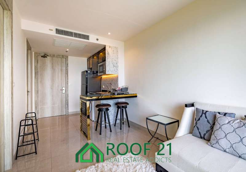 This modern 1-bedroom condo is located on the 12th floor of Riviera Monaco in Na Jomtien, Pattaya. With 38.4 sq.m. of usable space and a clear, unobstructed sea view, this unit offers a peaceful and stylish living environment. Registered under the Foreign Quota, it's fully eligible for foreign ownership.