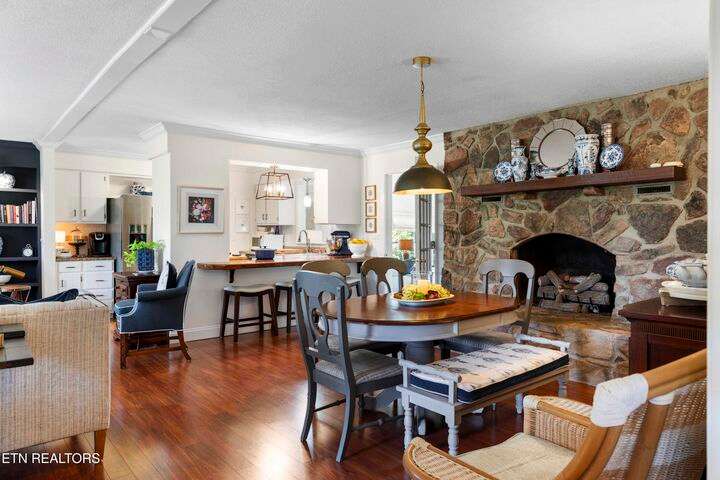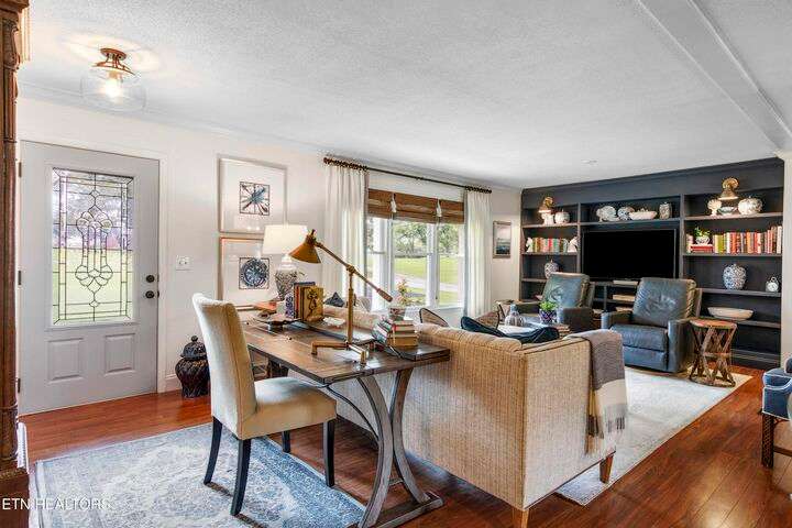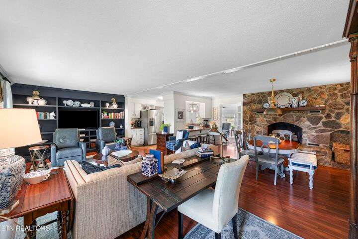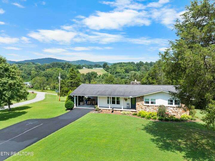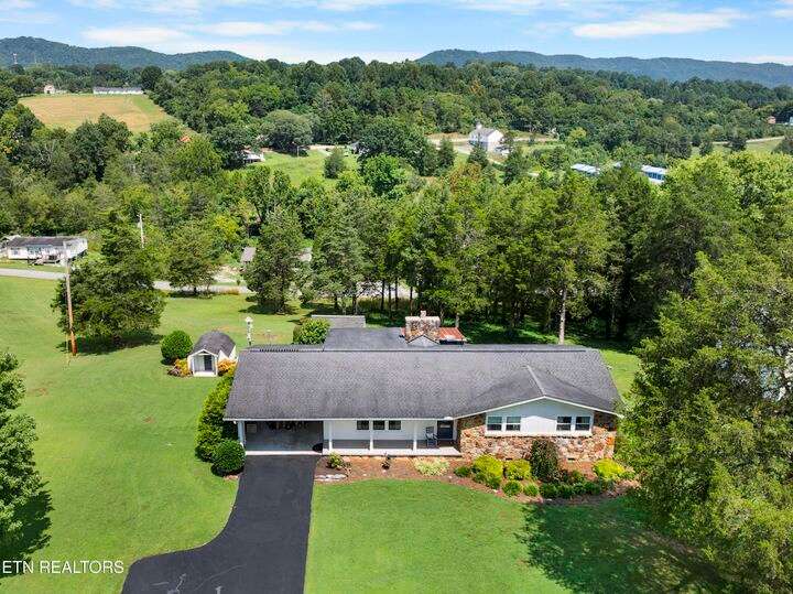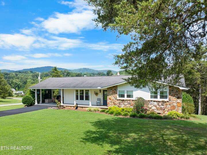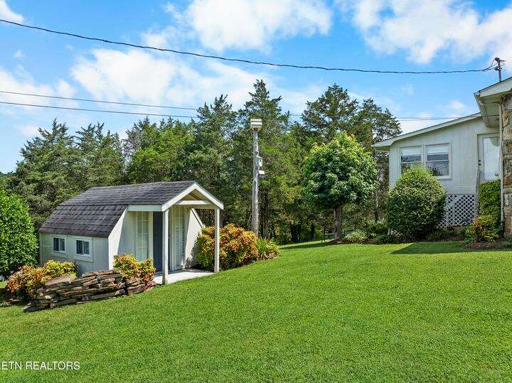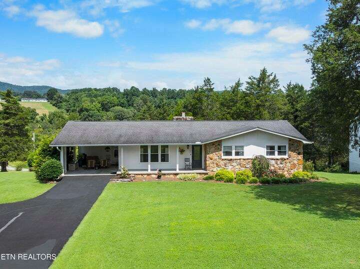 Check out this well-maintained one-level home, nestled in a mature neighborhood and sitting on an oversized 1.1-acre lot! Thoughtfully designed with custom touches throughout, this home offers an inviting open-concept living area featuring elegant laminate flooring, built-ins, and a beautiful stone gas fireplace. Natural light pours in through three large windows, creating a warm and welcoming atmosphere. The kitchen boasts solid oak cabinetry, a cooktop, built-in oven, tiled backsplash, and more. A bright sunroom off the main living area overlooks the expansive backyard, perfect for entertaining or relaxing. The handy mud room—conveniently located just off the carport—also doubles as a laundry area, adding everyday functionality. The primary ensuite features his and her closets, a custom-tiled shower, and thoughtful details throughout. Outside, you'll find two storage sheds and plenty of space to enjoy the outdoors. Located just minutes from Norris Lake, a public boat launch, and a park. Call today to schedule your private tour!