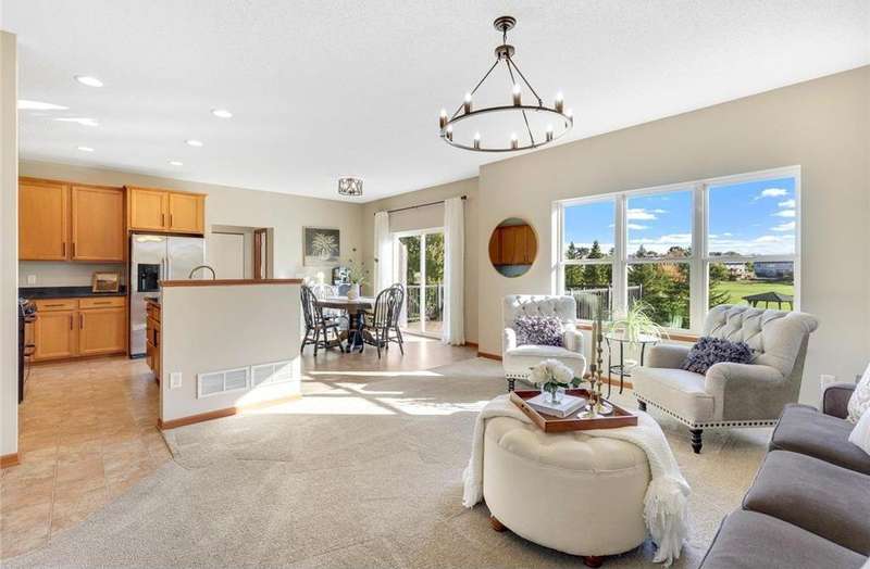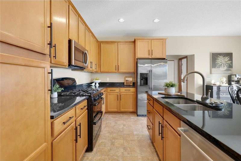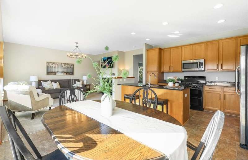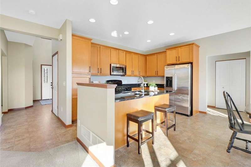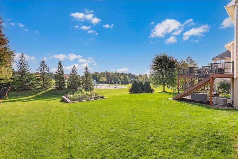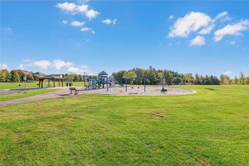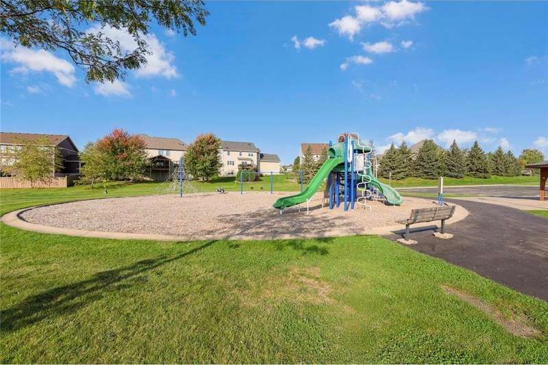 Don’t miss this stunning 2-story walkout home in the highly sought-after Chadwick Farms neighborhood of Lakeville, perfectly positioned to back directly to Chadwick Park with its playground, baseball and soccer fields, basketball court, and walking trails. This home shows like a model home! From the moment you step inside, you’ll be impressed by the grand two-story vaulted foyer, custom lighting, and an open, flowing floor plan ideal for both everyday living and entertaining. The main level features a formal dining room, private office, and a cozy family room with a fireplace. The eat-in kitchen offers a breakfast bar, abundant cabinetry, and access to a no-maintenance deck overlooking the park. A convenient laundry room with sink and half bath complete the main floor. Upstairs, you’ll find four spacious bedrooms, including a vaulted primary suite with a walk-in closet and serene backyard views. The finished walkout lower level is perfect for gatherings, featuring a second fireplace, large family room, wet bar with refrigerator and wine cooler, a luxurious ¾ bath with a soaking tub, and direct access to a beautiful paver patio. The oversized 3-car garage includes built-in storage racks and attic access. New furnace and AC in 2024. New water heater 2025. Award winning Lakeville school District #194, Lakeview Elementary, McGuire Middle School, Lakeville South High School. This home combines park-side living, comfort, and convenience—all in one of Lakeville’s most desirable neighborhoods.