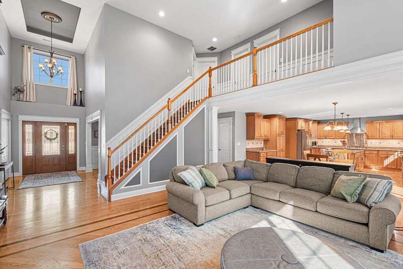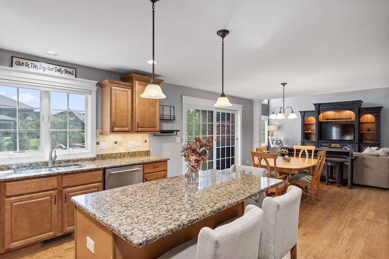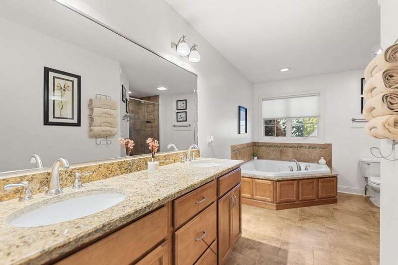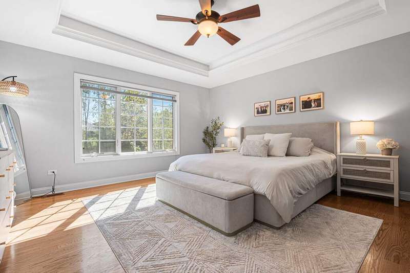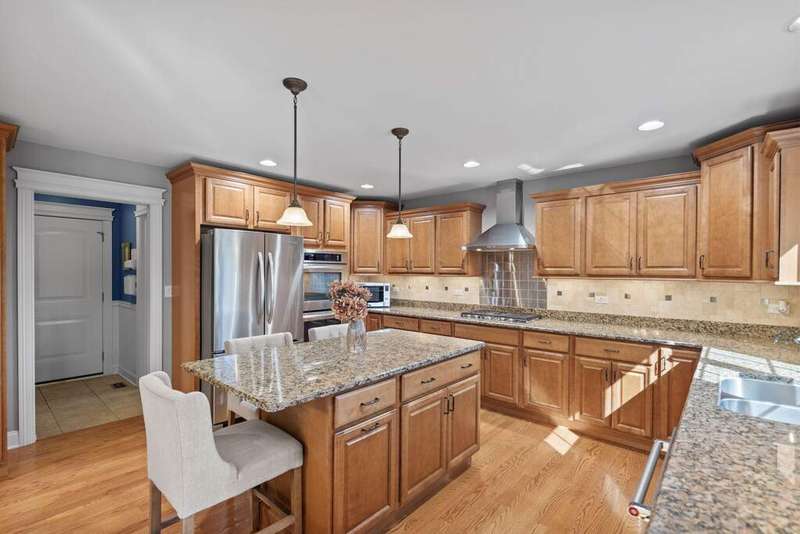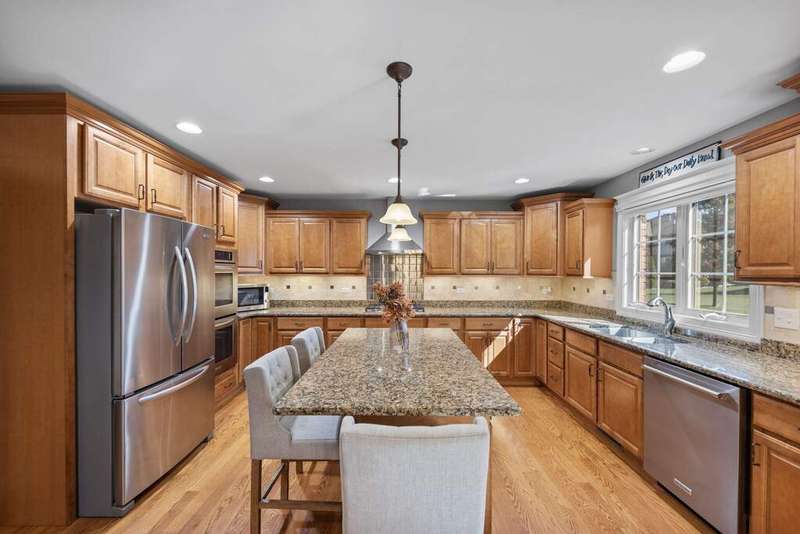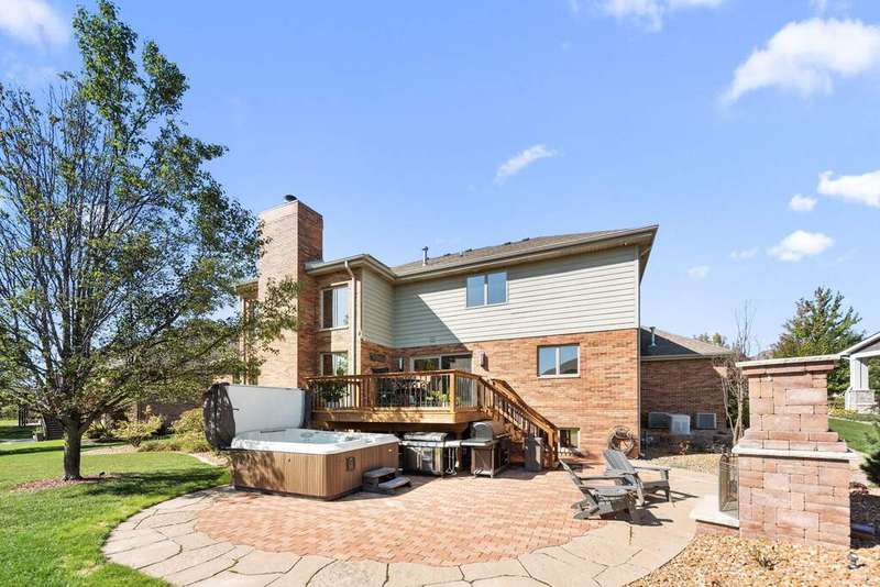 Welcome to Lake Hills! Experience luxury living in this stunning 5-bedroom, 4.5-bath home that combines timeless craftsmanship with modern comfort. Step inside to find vaulted ceilings, detailed crown moulding, and hardwood floors that create an atmosphere of elegance. Natural light floods through Andersen windows with privacy tint, highlighting **two spacious living areas--upstairs and down--**perfect for entertaining or everyday living. The gourmet kitchen features granite countertops, stainless steel appliances, under-cabinet lighting, and a pull-out pantry designed for convenience and style. Retreat to the oversized primary suite showcasing a tray ceiling, 6-foot whirlpool tub, custom 5-foot shower, and a California Closet walk-in offering impeccable organization. The finished basement is made for entertaining, complete with a custom wet bar under a stone archway, concrete countertop, and new appliances. A home gym (equipment included) connects to a spa-style bath featuring a 7.5' x 4' steam shower, delivering a true at-home retreat. Step outside to enjoy a custom brick fireplace, nine-person Jacuzzi hot tub, freshly stained deck, and beautiful landscaping on a generous lot with an in-ground sprinkler system. A heated 3-car garage gives plenty of storage. Located in the sought-after Lake Hills community, this home offers refined living with comfort, sophistication, and style at every turn.