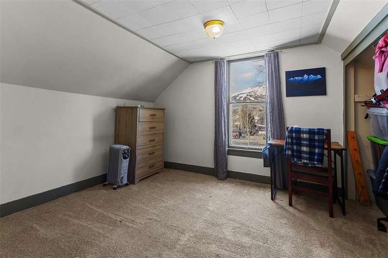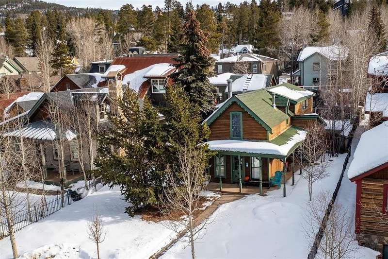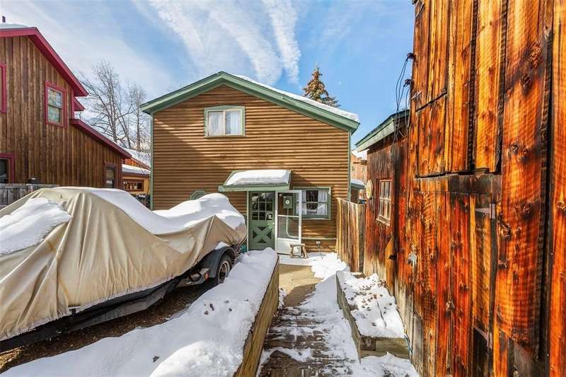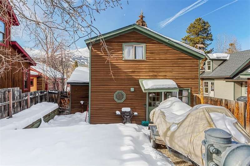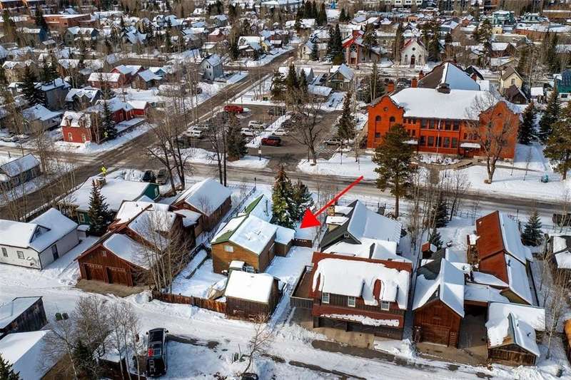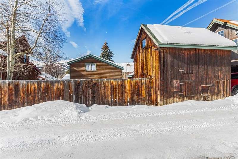 One of the only developable lots/homes left in downtown Breckenridge. Perfectly located in the heart of town with ski area views, a beautiful front yard, a fantastic historic barn that could be an ADU or mother-in-law suite and great parking. This 3 bedroom, 2 bath home is the perfect mountain getaway with all the charm that you are looking for in a ski home. You can walk to the bus for skiing, to multiple trails for hiking and mountain biking, to town and the dog park. You can also enjoy movies and the library right across the street. Call the listing agent for information about the development possibilities. See attached solar easement.