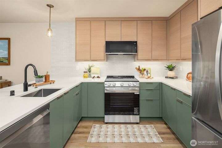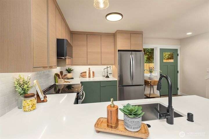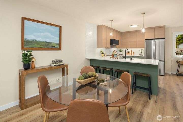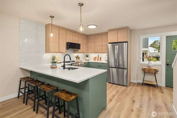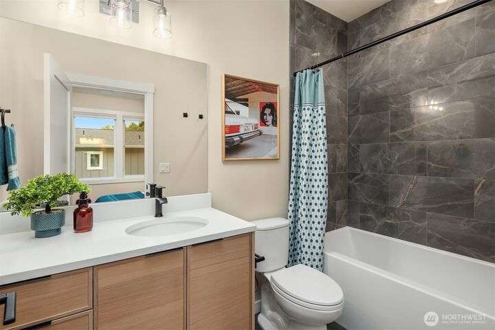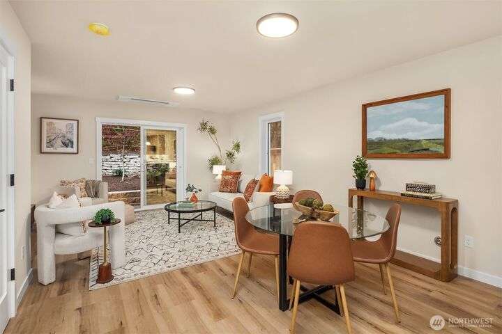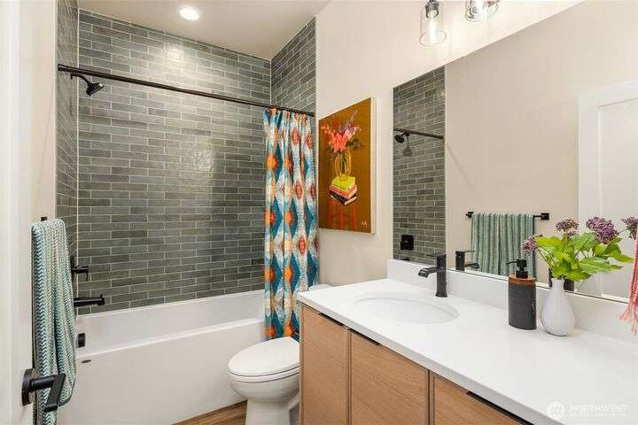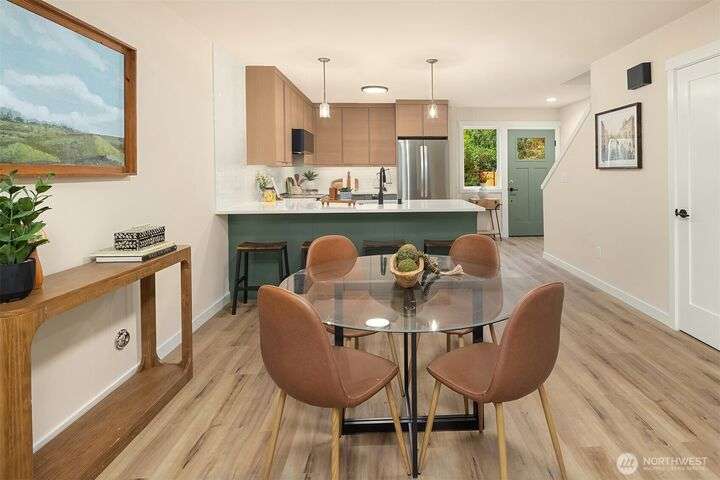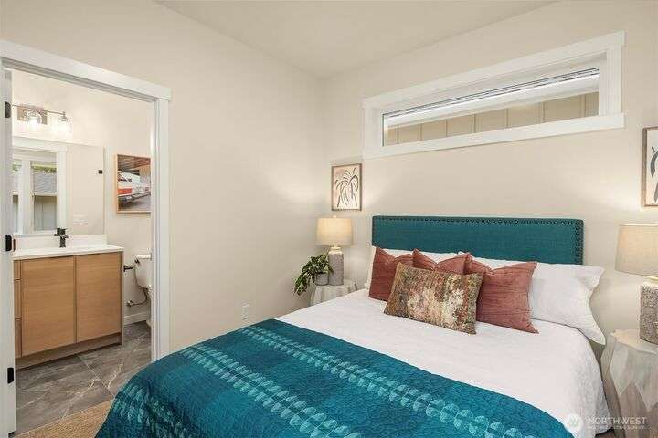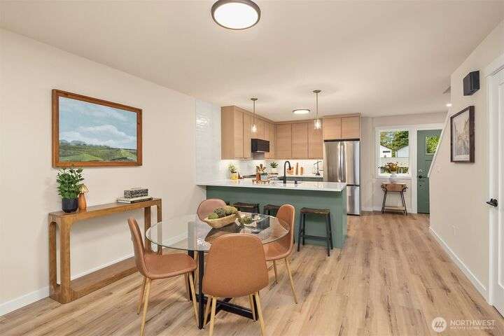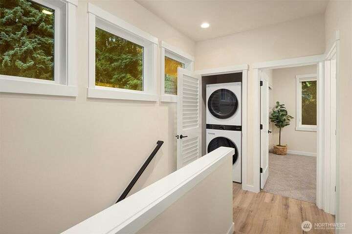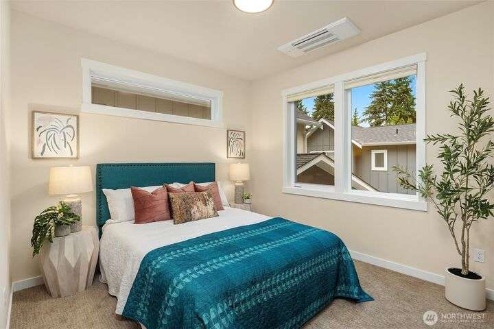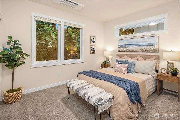 From trusted local builder Collz Inc, this 2-bedroom Matthews Beach home lives larger than most with its efficient 2-story design. Set on a quiet street, the open main floor is ideal for entertaining, featuring a stylish kitchen with rare walk-in pantry and a living area that flows to a private back patio. Upstairs, the primary suite offers a full bath and walk-in closet, joined by a second bedroom, full bath, and laundry. Thoughtful touches—mini-splits, custom blinds, washer/dryer—make it move-in ready. Dedicated EV-ready parking adds convenience. Blocks to Matthews Beach Park and minutes to SR-522 & I-5.