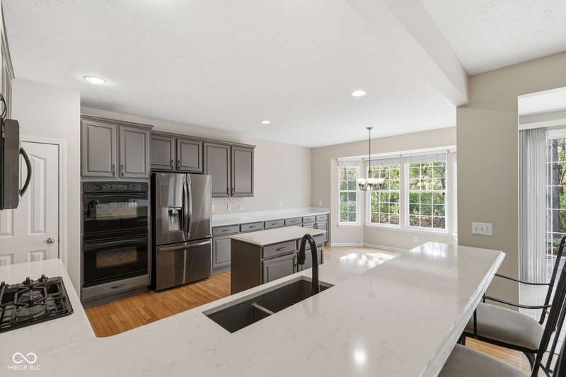 Beautiful one owner Pulte ranch with full finished basement on gorgeous wooded lot featuring fresh new paint inside and out and new carpet throughout plus new exterior siding and roof is one year old! The paver patio off of the sunroom is a delight with mature trees and privacy plus full irrigation system makes lawn care easy. The primary bath was remodeled with a huge walk-in shower that is ADA compliant to make aging in place an easy option. Kitchen has been updated with tile backsplash and fresh countertops plus a cabinet redux. There's a gas cooktop and double ovens built in plus a small butler's pantry in the short hall for a coffee bar or charging station. The 9ft lower level is huge and offers a wall of cabinets plus endless opportunities with a full bath AND a large unfinished storage area. Sump is already equipped with a battery backup and all appliances are included with this listing. The fireplace looks brand new because it was never used!! Great room features a wall of built-in cabinets and a lovely attached sunroom space that gives wonderful light and warmth to the room on the gloomiest of gray winter days. The entry gives way to a front room that offers double glass doors for privacy for an office or formal living room space as this is the perfect flex room for your ideas/options. Two large bedrooms are down the hall separate from the primary bedroom for guests and the primary bedroom offers a great view of the wooded rear yard and nature. Come take a look at this easy move in property and fall in love!