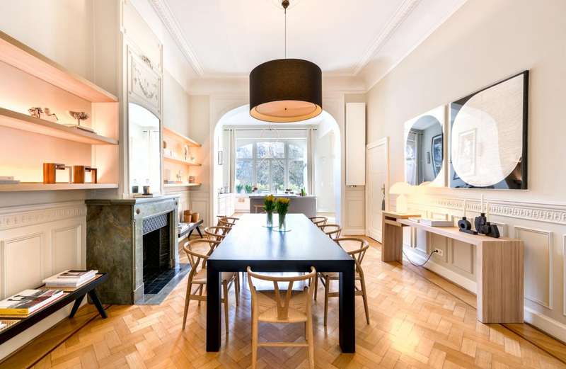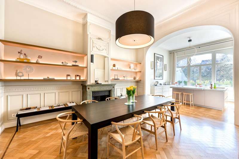 Just a stone's throw from Place Brugmann, on one of Brussels' most iconic avenues, this mansion charms with its stunning 7.5-metre French stone façade, refined architecture and south-facing city garden (plot of ± 3 ares). With a living area of ± 520 m², the house offers bright reception rooms, a fully equipped kitchen, an office, as well as 5 bedrooms and 4 bathrooms, including a large master suite. The sunny garden is a real haven of peace, rare at this address. A garage for two cars completes this exceptional property, which combines residential prestige and contemporary comfort in the heart of a sought-after neighbourhood. EPC: D+
