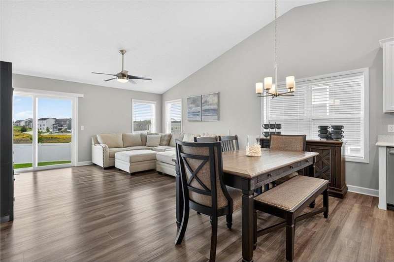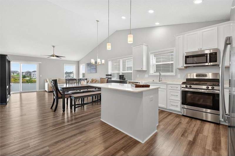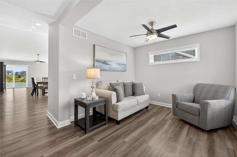 Meticulously maintained home on a wonderful cul-de-sac lot! Enjoy the welcoming front porch, spacious 3-car garage, and highly sought-after layout with 3 bedrooms on the upper level. The main level offers upgraded vinyl plank flooring, a versatile front Flex Room, vaulted ceilings that create an open, airy feel in the Kitchen and Great Room. Beautiful white Kitchen cabinets accented with crown moulding, a large breakfast bar, and stainless appliances included. Step outside to the private fenced backyard for relaxing or play. Upstairs, you’ll find 3 generously sized bedrooms, including a beautiful primary suite with a private full bathroom featuring dual sinks. The lower level offers fantastic potential for a future Family Room and additional Bedroom, plus plenty of storage space. A must see!