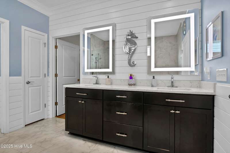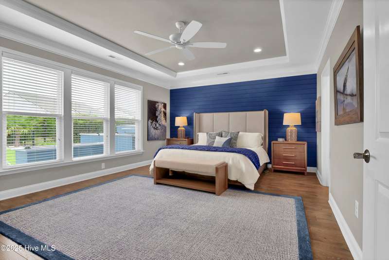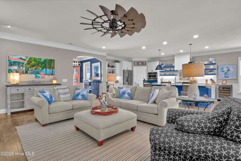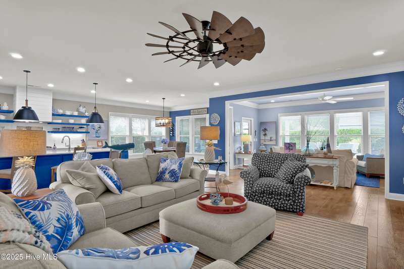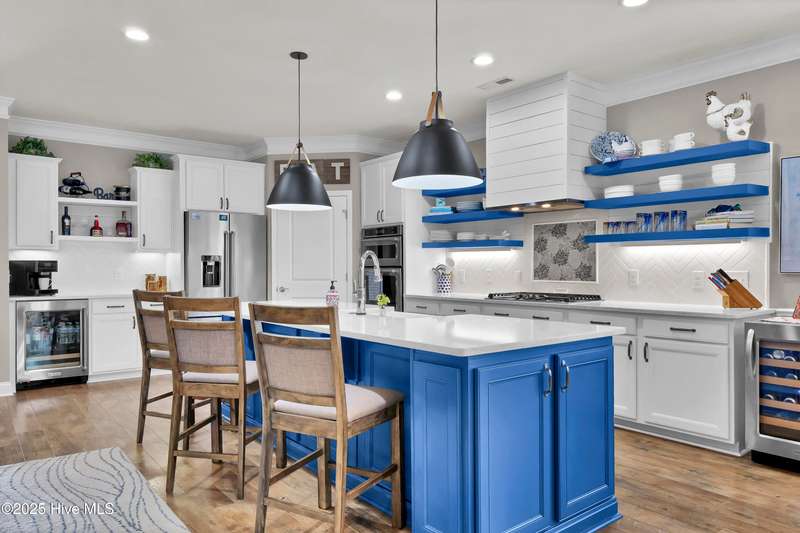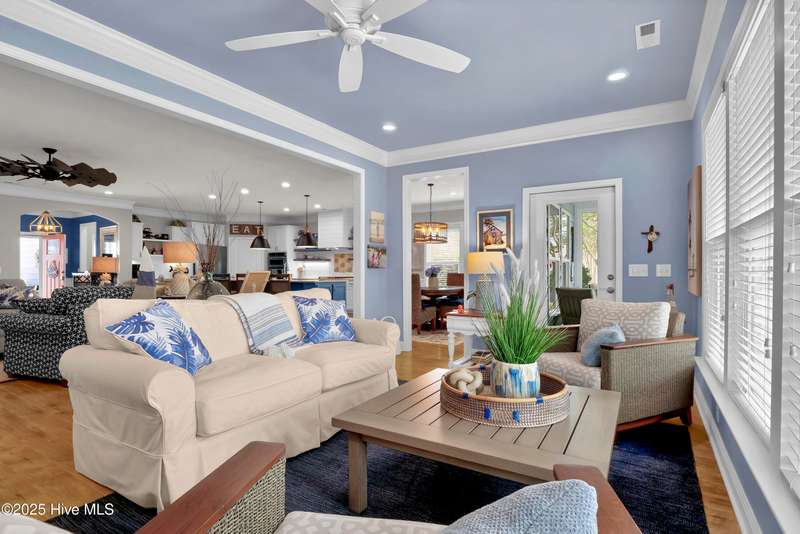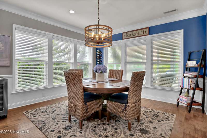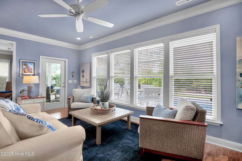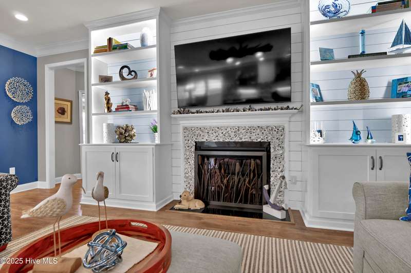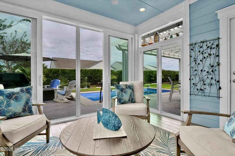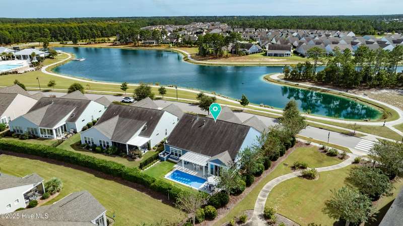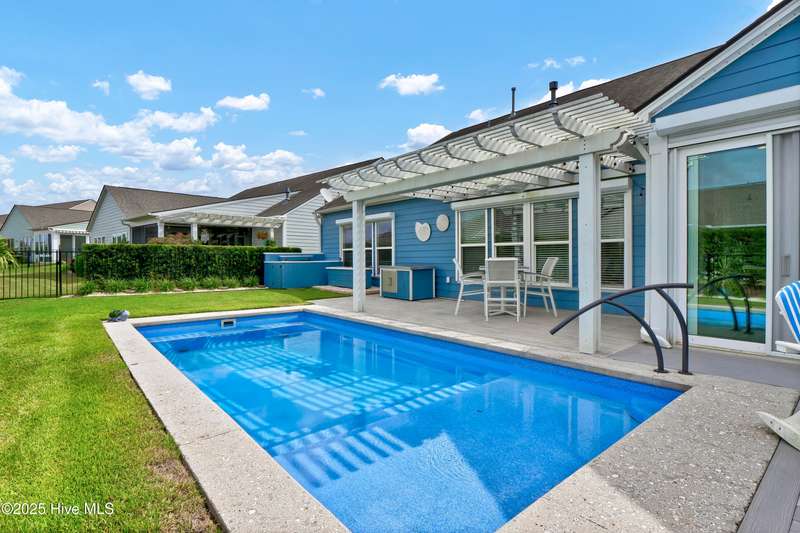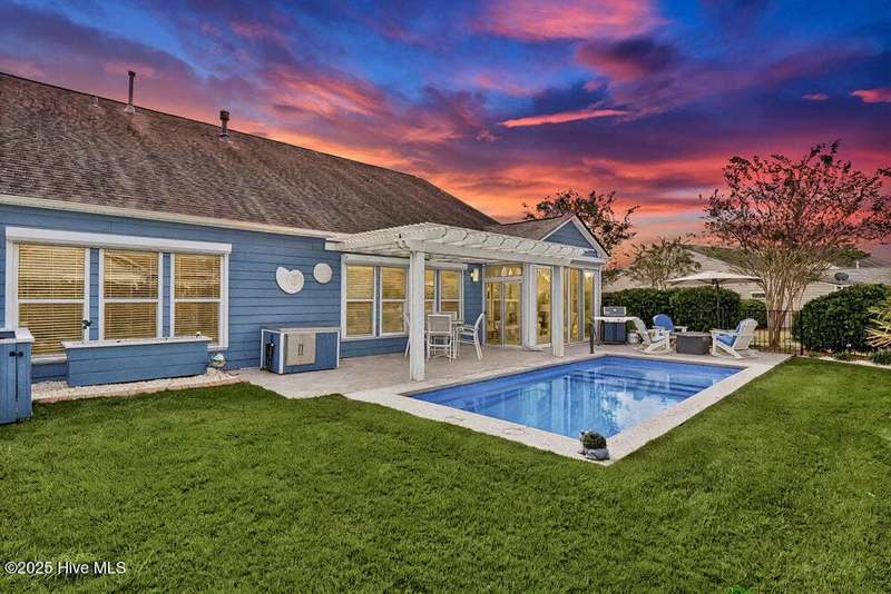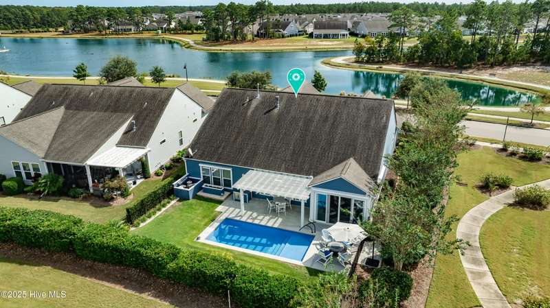 This ''Dunwoody'' is truly a one of a kind offering the only private in-ground saltwater poolin the entire amenity rich Del Webb community of RiverLights. The open-concept living space features upgraded details throughout including a custom fireplace, premium cabinetry, crown molding, and doors. The Gourmet Kitchen has been beautifully remodeled with open shelving, a porcelain farmhouse sink, and stainless steel, Kitchen-Aid appliances including a brand-new gas cook top (installed 9/25). A microwave/oven wall unit and large pantry, custom shelving complete this dream kitchen.The home features 3 bedrooms and 3 full baths all on one level, along with a transomed French-door Flex Room. Designer lighting, ceiling fans, window blinds, and engineered hardwood floors run throughout the main living areas, with tile in the bathrooms. The Primary En-suite bath offers a spa-like experience with a ''Zero Entry'' walk-in rain-head shower featuring multiple body sprays and a custom closet system. The second en-suite includes an electric fireplace and an upgraded shower for added style. The Drop-Zone/Laundry Room with cabinetry & an upgraded sink connects to the epoxied garage floor & attached golf cart garage, providing the perfect space for your cart or workshop.A sunroom plus a spacious three-season room overlook your private backyard oasis, where entertaining or relaxing with views of the shimmering saltwater pool year-round, make this home's indoor-outdoor flow unmatched. Situated on a premium lakefront lot, showcases enhanced landscaping, custom curbing plant beds, and an integrated sprinkler system, all maintained by the HOA for easy living.The Del Webb community offers resort-style amenities: indoor saltwater pool, outdoor pool, hot tub, fire pit, pickle-ball, tennis, and boccie ball courts, plus numerous clubs and activities. Take in the 3+ mile walking / biking path around the lake or take a short drive or bike ride to Marina Village on the Cape Fear River. and an integrated sprinkler system all maintained by the HOA for easy living. The Del Webb at RiverLights community offers unparalleled resort-style amenities: indoor saltwater pool, outdoor pool, hot tub, fire pit, pickleball, tennis, and boccie ball courts, plus numerous clubs and activities. Take in the 3+ mile walking and biking path around.
