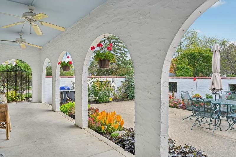 Discover this beautifully updated 3-bedroom, 3-bath Spanish-style ranch! Blending timeless character with modern comfort, this home features distinctive arched details, a chef's kitchen, and an incredible private courtyard?perfect for entertaining or relaxing surrounded by lush landscaping.Inside, abundant natural light fills the open, flowing layout through large windows and light tubes. The gourmet kitchen offers quartz counters, stainless steel appliances, and generous workspace, opening seamlessly to the dining and living areas?ideal for gatherings of all sizes. A natural fireplace adds warmth and charm, creating a welcoming centerpiece for the living space.The spacious primary suite features an updated en-suite bath, while two additional bedrooms and full baths provide flexibility for guests, a home office, or hobbies. The oversized 2.5-car garage offers excellent storage and doubles as an inviting space for casual get-togethers.Enjoy nearby parks, tree-lined streets, and convenient access to shopping, dining, and major highways.Experience the perfect blend of style, comfort, and location in this truly one-of-a-kind courtyard ranch?an exceptional opportunity in one of the area's most sought-after neighborhoods!