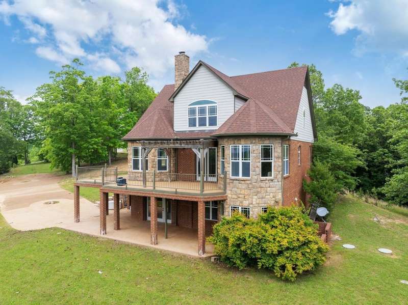 INVESTOR OPPORTUNITY & MOTIVATED SELLER! Majestic Views of the TN River on 2.87 private acres, this property features over 4000 square feet ready for new owners to finish to their taste. 3 levels of living space-all featuring the water views. Electric, septic & water are connected. HVAC units are installed and operational. Exterior is finished & interior rooms are framed. Plenty of places to enjoy the outdoors in the awesome deck, patios, front porch & gazebo. Located in the desirable gated River's Edge resort area, this beautiful build is located on 2 resort lots, & features a custom concrete drive & parking area. The community boat ramp & courtesy dock add to the convenience of TN River living! Riverstone Marina is nearby as is the Clifton Marina.