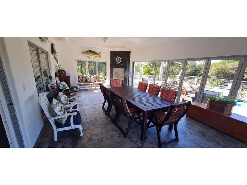 This welcoming family home set in a beautiful 2023m?? garden offers expansive open plan living areas with magnificent ocean and sea views! This home offers six bedrooms, five bathrooms, study, large living areas and a separate staff room with bathroom. A large separate, private braai room next to the pool area makes for excellent entertaining. A true paradise for sundowners around the inviting pool. An exclusive opportunity to own a spacious and elegant home in a secure and tranquil street in Port Edward. Offering discreet luxury for discerning buyers, this property is centrally located close to the beach and CBD area. Offers understated elegance and stylish, contemporary architecture. Other Features: Boat House and large under cover boat shelter. Larger than normal lock-up Garage. Ample additional parking. Excellent Security and back-up energy system. Separate Water tanks with pump connected to the house. Ideal for holiday, private or dual living! Call me today for an appointment to view! This property is situated in Port Edward on the South Coast of KwaZulu-Natal, close to the Wild Coast near the Eastern Cape Province border and close to the Wild Coast Sun and Casino. This area offers outdoor living in the form of hiking trails and water sport from boating and fishing. Surrounded by renowned golf courses. A huge variety of bird life and small buck species can be observed as you make your way towards the warm Indian Ocean to unspoilt beaches! Port Edward beach has a launching facility. The coastline between here and Port Shepstone to the north is popularly known as the Hibiscus Coast because of its lush sub-tropical vegetation!