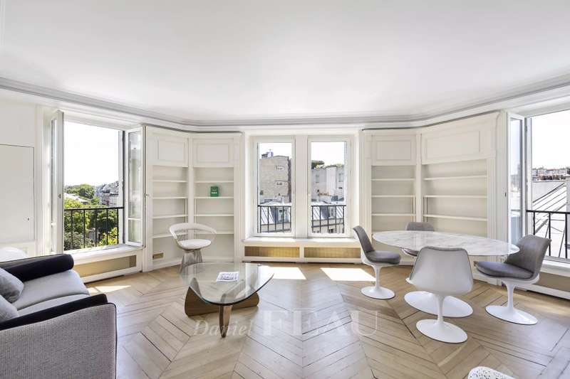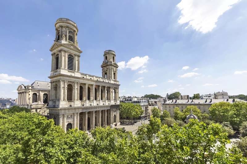 Sole Agent. This meticulously renovated 2-room apartment offering about 65 sqm of living space is on the 6th floor of a fine early 20th century building with a lift. Fully south-facing, benefiting from no facing neighbours and commanding a picture-postcard view of Saint Sulpice Church and the square, it includes a corner living/reception room, a separate kitchen, a bedroom, a bathroom and a wc.