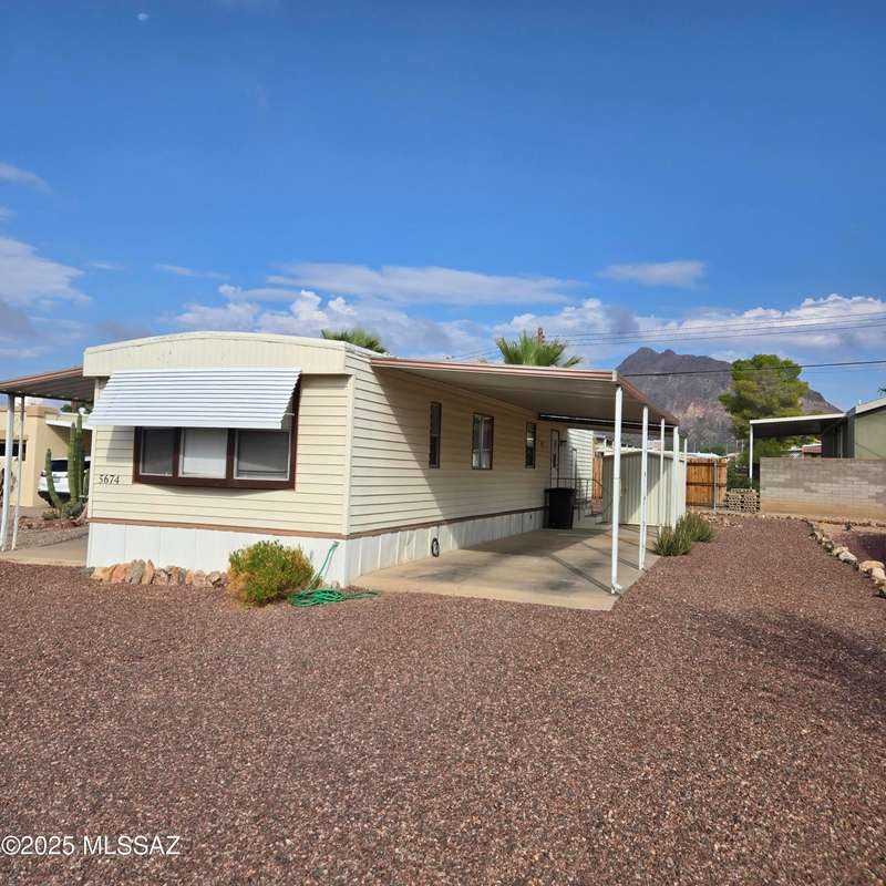Move in Ready! 2br 2ba home in the highly sought after Tucson Estates Community. Well-cared for home with a split-bedroom floorplan. Spacious kitchen and open floor-plan add to its charm. Amenities include an 18-hole executive golf course, swimming pools, hot-tub and spa, library, Circle Park and tennis. Also has it's own radio station.You own the land!