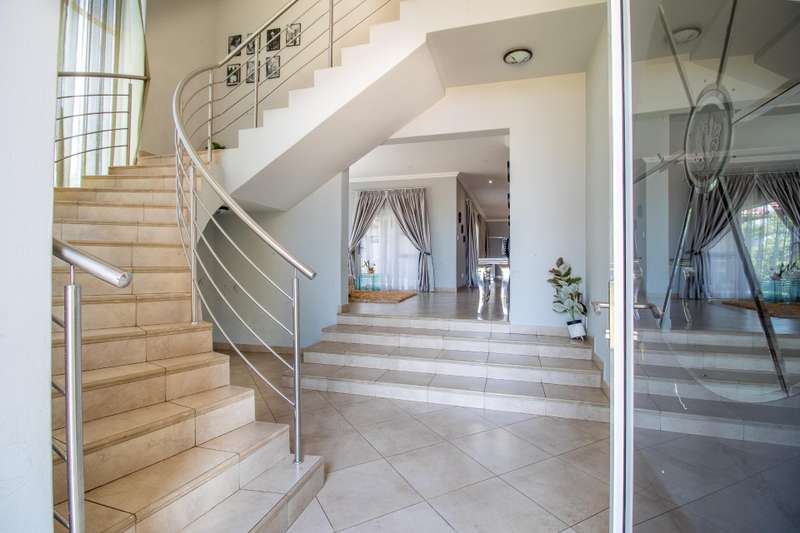 Spacious Double-Storey Home with Views ?Çô Ebotse Golf & Country Estate Set on a prime corner stand with sweeping views of the lake, this beautifully designed double-storey home offers space, comfort, and a timeless sense of character. Featuring five bedrooms and four-and-a-half bathrooms, the layout provides ample room for family living and entertaining. The main bedroom serves as a private retreat with a full en-suite bathroom, walk-in closet, and balcony overlooking the water. A guest suite with its own en-suite ensures privacy for visitors, while all bedrooms enjoy built-in cupboards and outdoor access. The open-plan living and dining areas flow around a striking staircase, creating a welcoming heart to the home. The kitchen includes granite countertops, a breakfast nook, and plenty of workspace ?Çö ready to be modernised to your own taste. Outside, a lush garden and inviting swimming pool provide the perfect setting for relaxed family living and entertaining. Additional features include staff accommodation with en-suite, three garages, and solid construction throughout ?Çö ideal for buyers who value space, views, and the opportunity to update and make it their own. Located within the secure and exclusive Ebotse Golf & Country Estate, residents enjoy access to world-class facilities, a championship golf course, and a lifestyle defined by peace and natural beauty. Contact us today to arrange a private viewing and explore the potential this lake-view home offers.
