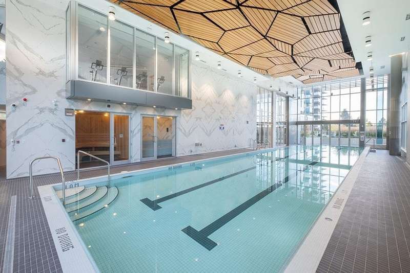 APEX Denna Collection home with ALL of the GOODIES! Multiple parking stalls (1 w/ EV), motorcycle stall, HUGE storage ROOM, storage locker & 2 bike lockers! Room for ALL of your TOYS! These homes are the pinnacle of luxury w/ an upgraded offering including: elevated ceiling heights, upgraded gaggenau appliance package, heated tile bathroom floors & more privacy w/ only 6 homes per floor. Private split bedrooms each have their own walk-in closet. The West exposure boasts loads of natural light with floor-to-ceiling (triple glaze!) windows. Enjoy gorgeous SUNSET views & Ocean/Mountain gazing from either of your 2 PRIVATE decks complete w/ gas bib! The luxurious amenities at Denna Club include: 25-meter infinity edge pool, hot tub, steam room, sauna, gym & party room.*Digitally staged photos*