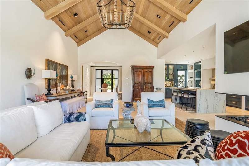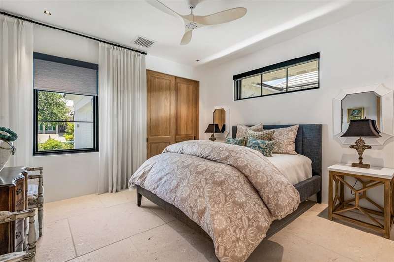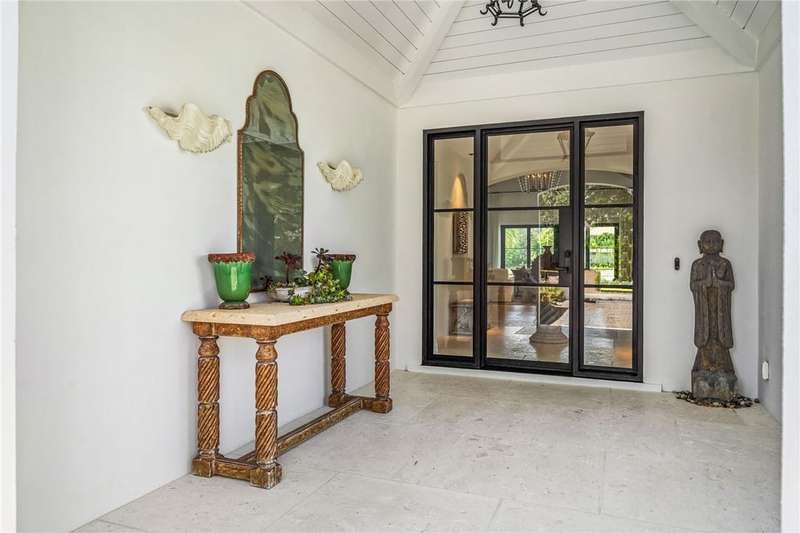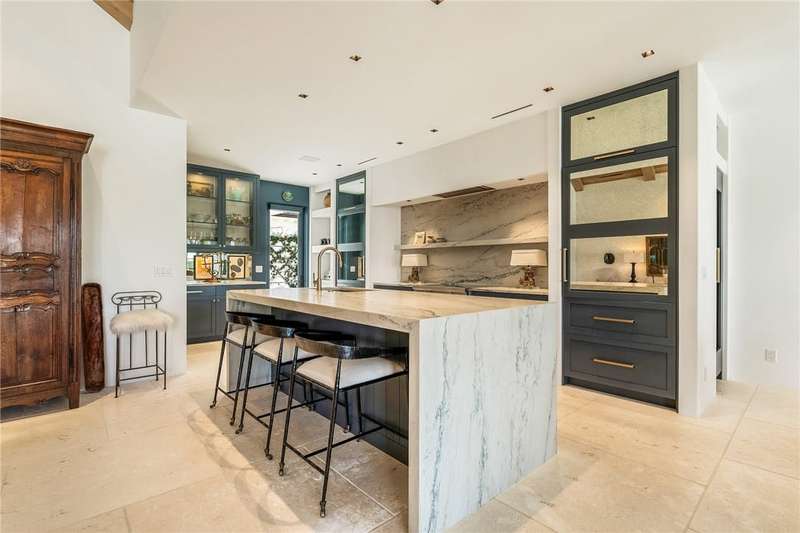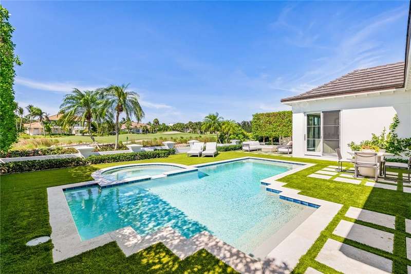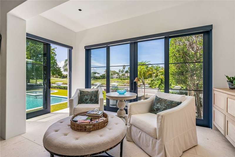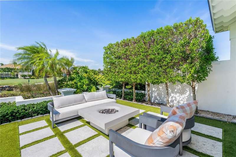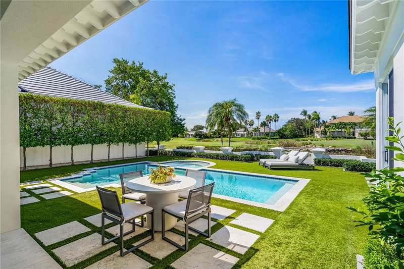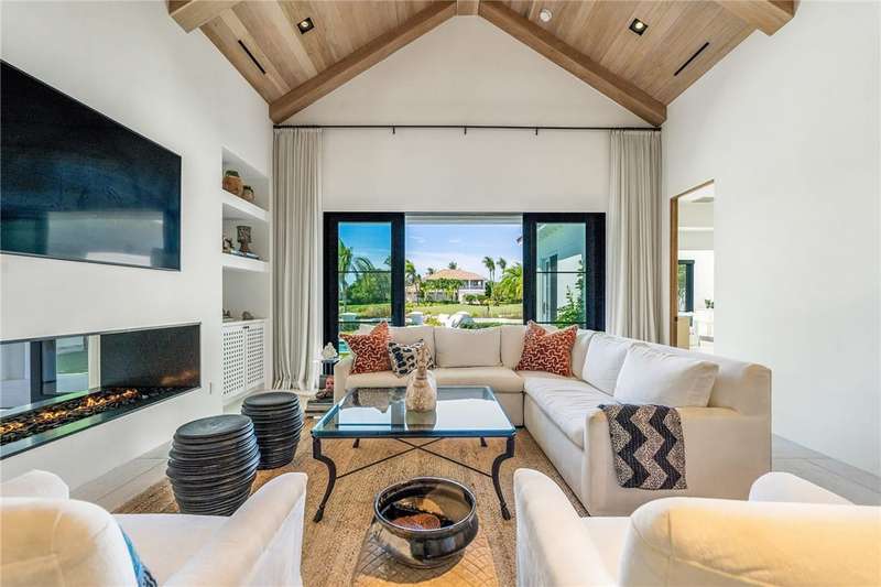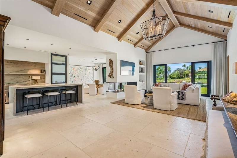 Stunning Orchid Island home with beautiful golf view of the14th fairway. Remodeled updates include impact glass, Imported Turkish limestone floors throughout, oak interior doors & an open kitchen with top-tier appliances & Quartzite counters. A beautiful cathedral wood ceiling accents the light and airy living room & a modern gas fireplace opens to the living & dining rooms. The spacious primary suite offers golf views. An expansive electric-heated pool with new spa, built-in grill adjoins a shaded patio & gas firepit perfect for entertaining & relaxing at home. Sizes approx./subj to error.