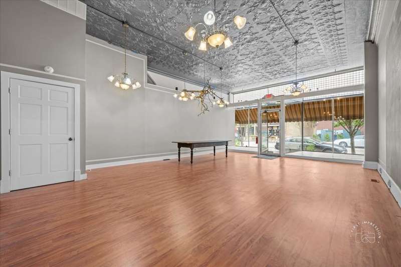 This PREMIER renovated 1882 space on historical Douglas Ave is primed for your retail / office space. Located in the heart of downtown Elgin with abundant street parking right outside the front door and a free city parking garage just a block away. The original tin ceilings are freshly painted and stunning! Featuring a large display room with street side windows providing excellent exposure to showcase your products. Complete with ample lighting and three additional Flex rooms perfect for merchandising or office use. Including a full and half bath with kitchenette with a tiny triangle out back! This opportunity to have a space with robust foot traffic and high VPD won't last! Bring your business plan today!
