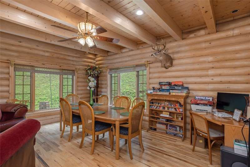 Opportunities like this don't come around every day! Owned by the same family for generations, now ready for the next chapter! Imagine living in a log cabin perched on a hill with breathtaking views of Lake Glenville, framed by the Blue Ridge Mountains. From this incredible vantage point, the home is nestled within approximately 112 acres of peaceful privacy. Designed for outdoor living, it features wraparound decking, a large grassy yard, and a patio with a fire pit. Relax on the deck and watch boats on the lake or gather with loved ones for cozy evenings by the fire. Inside, the traditional log cabin charm is highlighted by oversized windows that reveal the natural beauty of your surroundings. A stone fireplace adds warmth to the inviting great room. An upstairs loft and additional living space downstairs provide ample room to spread out and entertain guests. In addition to the exceptional views, the expansive property features pond and stream frontage. Direct access to Jenkins Lake is the perfect spot to add a dock for fishing or simply as a launching pad for your pups to enjoy the cool, refreshing water. For those looking to build a custom creation, this home is a great starting point for constructing a dream home on the property, with an excellent, flat building site located just above the house. The site is just one of many on the property, offering privacy, a usable yard, and breathtaking long-range views of the mountains and lake. Located just minutes from downtown Cashiers, this large tract of land offers endless possibilities. Whether creating a family compound, exploring development opportunities with potential homesites providing stunning views, or enjoying it as a private mountain retreat, the property delivers unmatched versatility. And with a successful vacation rental history, the home provides an immediate opportunity. It is a haven for outdoor enthusiasts, complete with hiking and UTV trails within the private property, easy access to Lake Glenville, and the cozy town of Cashiers. The home has two boat slips at Cedar Point that are not included but could be purchased. The possibilities of this property are truly limitless!