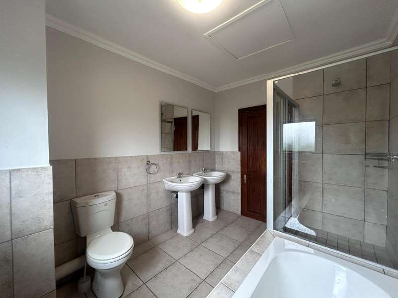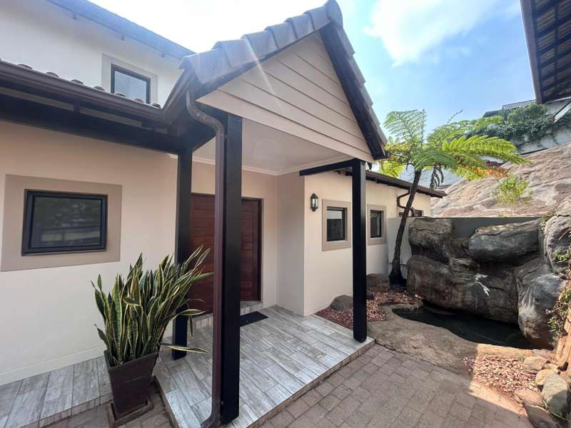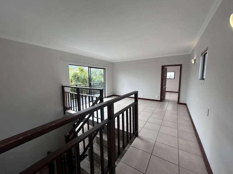 Dual Mandate Please contact the agent in advance of the showday to book access to the estate This elegant 3 bedroom, 2.5-bathroom home in Seaward Estates, offers the perfect blend of comfort and modern living. A staircase leads you down to the front door and into a bright, open-plan dining and lounge area. Wide stacking doors create seamless indoor-outdoor flow, opening onto a covered patio and private garden, surrounded by lush greenery, ideal for entertaining or enjoying quiet family time. The spacious kitchen is well-appointed with ample counter and cupboard space and a separate scullery On the lower level, the generously sized main bedroom provides a peaceful retreat, complete with a luxurious en-suite bathroom featuring both a bath and shower as well as a walk in closet. Upstairs, you?ÇÖll find two additional bedrooms that share a stylish family bathroom with a bath, shower, and double vanity. A spacious pajama lounge adds an extra living space, perfect for relaxing or as a children?ÇÖs play area. Each upstairs room opens onto a balcony through sliding doors, offering elevated views over the green valley, enhancing the home?ÇÖs serene setting within this secure estate. The property is complete by a double garage, aircons throughout, wrap around garden, and water storage tanks