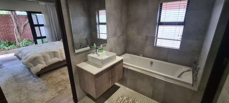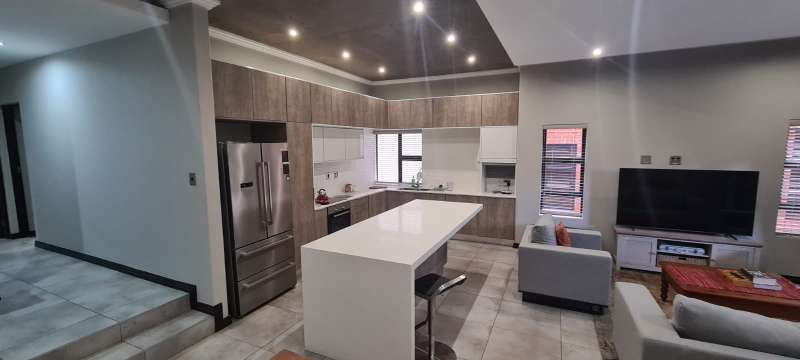 Welcome to this exquisite property. Discover the epitome of sophisticated living in this stylish 2-bedroom property nestled in the heart of Menlo Park. Open the doors to this fully tiled property with high quality finishes. This chic, modern property flaunts an open-plan living area and kitchen, offering an abundance of space for all your gadgets and gizmos. The modern kitchen offers granite surfaces and top-quality cupboards. The central kitchen island/breakfast bar offers enough countertop workspace for the discerning chef Large Aluminium windows allowing ample fresh air and natural light to flow into the spaces. The open plan living area opens onto a very private and peaceful patio. Equipped with a built-in barbeque (braai) area, the patio offers an idyllic space to unwind. This property boasts two spacious bedrooms, carefully designed to offer comfort and seclusion. The main bedroom, opening onto a small wooden patio is a true retreat and features an en-suite bathroom and intelligently designed built-in cupboards. The second bathroom is conveniently located to serve the additional bedroom and guests alike, ensuring optimal privacy and convenience. Rest easy with the added security features of the complex, ensuring a safe and peaceful living environment. Additional features of this exceptional property include a very spacious double garage, providing secure parking for your vehicles. The complex amenities further offer well-maintained communal areas. Conveniently situated in Menlo Park, you'll have easy access to local parks, shopping centers, dining hotspots, and major transportation routes. Enjoy the vibrant city life, this location caters to a variety of lifestyles. Seize the opportunity to elevate your living experience in Menlo Park. Contact us today to schedule a viewing and envision the lifestyle that awaits you in this conveniently located property.