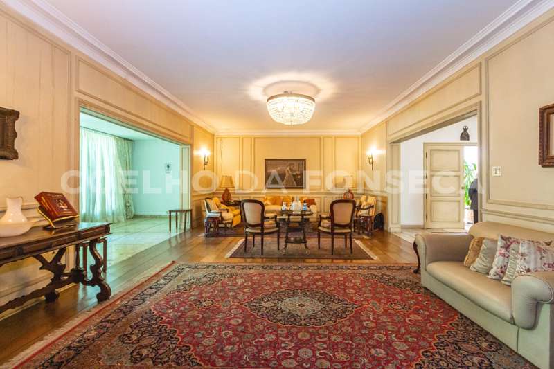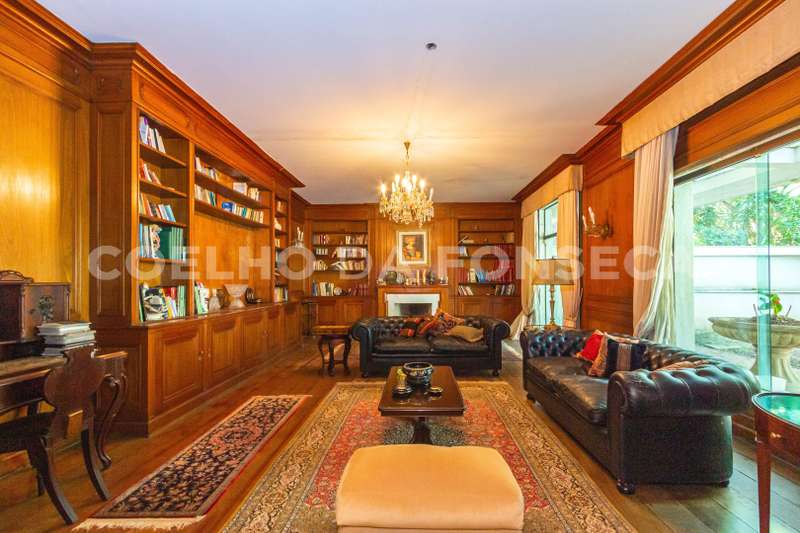 Casa na melhor localização do Jardim Lusitânia! 920 m² de terreno e 1100 m² de área útil (construída). Localizada na parte central do bairro! Projeto de arquitetura e decoração de Bubi Ernaz. Projeto de marcenaria de Jean Claude Bahe. Hall de entrada suntuoso, sala de jantar, sala principal e biblioteca. Casa com todos os ambientes revestidos em paredes de madeira de lei, com detalhamentos em molduras feitas artesanalmente por Jean Claude Bahe.