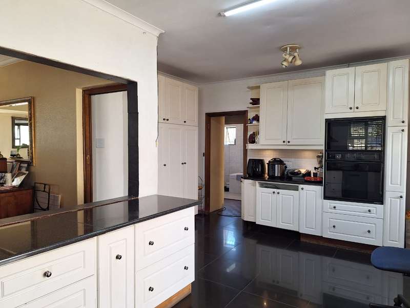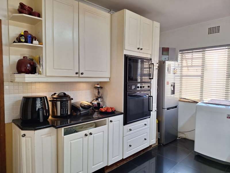 Stunning Home with Spacious Living Areas: This beautiful property features a large, inviting lounge seamlessly flowing into an open-plan dining room with a stylish bar counter—perfect for entertaining. The modern, fully fitted kitchen boasts a hob, extractor fan, and double oven, offering a functional yet chic space for cooking. There are three generous bedrooms, all featuring the original parquet flooring that adds timeless charm. The main bedroom includes built-in cupboards for added convenience. A full family bathroom with a built-in walk-in shower completes the main living space. Granny Flat: The well-appointed granny flat includes a fully fitted kitchen, a comfortable lounge, and two spacious bedrooms. The family bathroom features a shower, toilet, and hand basin. Additional Features: Inverter Carport with ample parking space for 4-5 cars Fully automated carport door and pedestrian gate for added security Borehole for water supply Fully enclosed property with security cameras, beams, and an automated outside gate for peace of mind