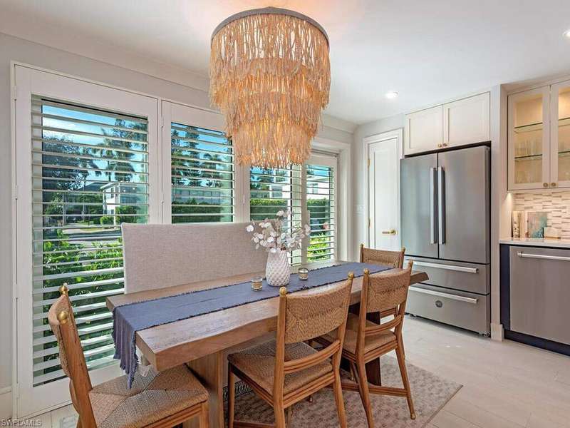 Just a short stroll from the pristine beach, bustling Saturday farmers market, and vibrant 3rd Street South, this stunning 2-bedroom, 2-bath condo offers an unparalleled lifestyle in one of Naples' most sought-after areas.Indulge in the elegance of this meticulously remodeled first-floor unit, showcasing opulent furnishings and exquisite impact doors and windows. This poolside haven embodies refined living, with no detail overlooked in its comprehensive renovation. Enjoy striking oversized wood porcelain tile flooring, custom trim, and elegant 3-panel solid core doors fitted with premium Emtek hardware, creating an atmosphere of sophistication.The gourmet kitchen is a culinary dream, featuring professional-grade appliances, custom cabinets with polished stainless steel and glass fronts, and designer lighting that illuminates the space. A stunning quartz peninsula with a captivating waterfall edge serves as the perfect centerpiece for entertaining or quiet moments.Equipped with full hurricane protection, including impact-rated windows and doors, this home offers peace of mind during storm season. The building has successfully passed all required Florida condominium inspections, ensuring structural soundness and compliance with current standards.Located just steps from the Gulf and the world-famous Naples Pier, enjoy morning walks along the beach, sunset views, and the charm of nearby Third Street South and Fifth Avenue South, where fine dining, boutique shopping, and art galleries await. Parks like Cambier Park and Baker Park are also just minutes away, providing green space and recreation right in town.This move-in-ready home is ideal as a primary residence, seasonal retreat, or investment opportunity. With its turnkey furnishings, updated interior, and unbeatable proximity to the beach and downtown Naples, this property captures the very best of the Naples lifestyle.