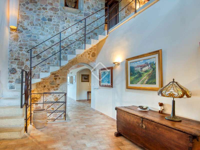 Villa Alba is a unique property located in the Volta del Ametller, a prestigious residential area with exclusive views of the bay of Sant Feliu de Guixols and its seaport. The house is located on a plot of 1,179m2 and consists of 515m2 built. We enter the house through that magnificent old wooden door and its entrance hall that leads us on the left to a very spacious dining room living room with its fireplace and fully equipped open kitchen. We can see stone walls, wooden beams and ceilings typical of the farmhouses of yesteryear. On the same floor we have 2 double bedrooms, 1 large suite with its dressing room and full bathroom , and its very large garage for two cars with its laundry room. From the living room you can enjoy views of the garden and the Mediterranean Sea, you can access the garden from the living room, with its covered porch and its exterior terrace. We go up the stone stairs to the upper floor to access the very spacious double master suite with its own living room, office and full bathroom . We go down to the lower floor where we have a Turkish sauna and a multi-use space ideal for a home cinema, a gym, a family meeting room or an extra room. The exterior area consists of a garden and terraces with beautiful views of the sea and the town of Sant Feliu. There is also a barbecue area with a wood-burning oven and a summer kitchen next to a terrace perfect for large family meals. Villa Alba has a unique style and is located close to the restaurants, shops and beaches of s'Agaro, and 5 minutes from the centre of Sant Feliu de Guixols. The house is equipped with air conditioning, alarm, individual heating, double glazed windows. Please do not hesitate to contact us for more information or to arrange a visit.