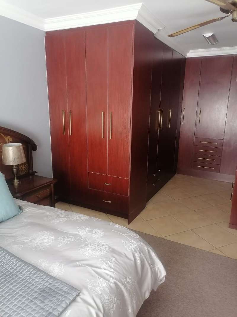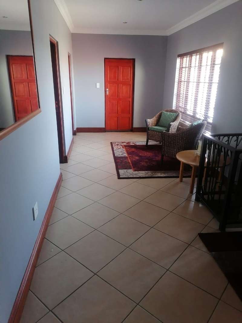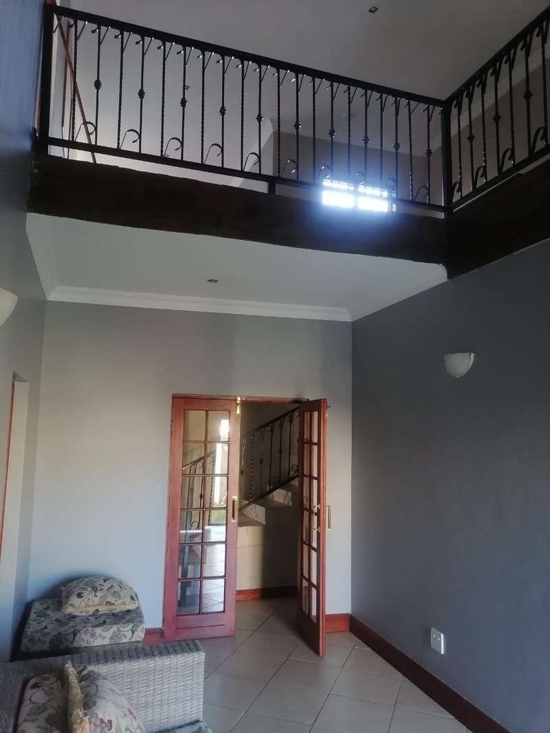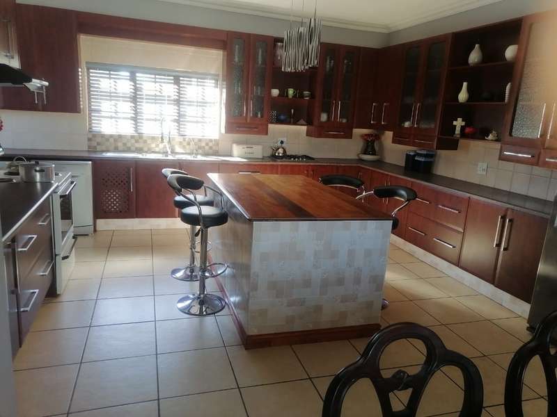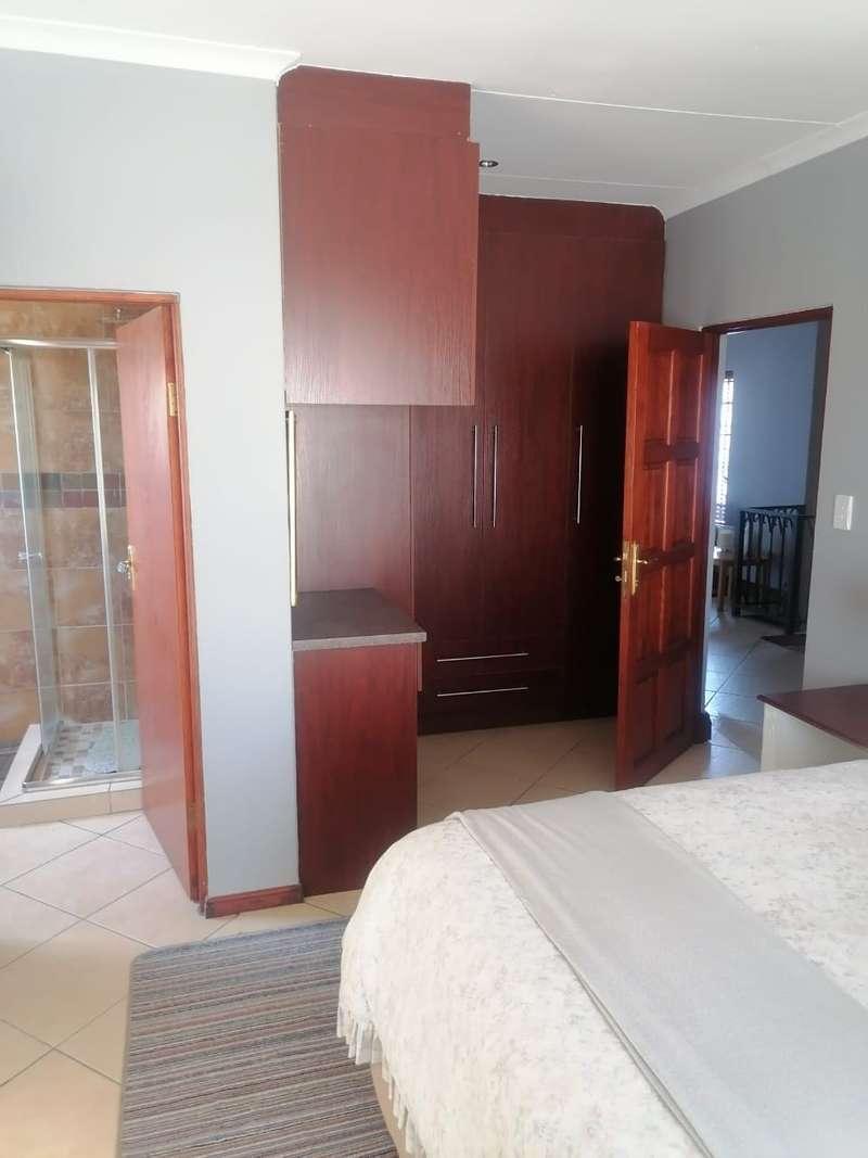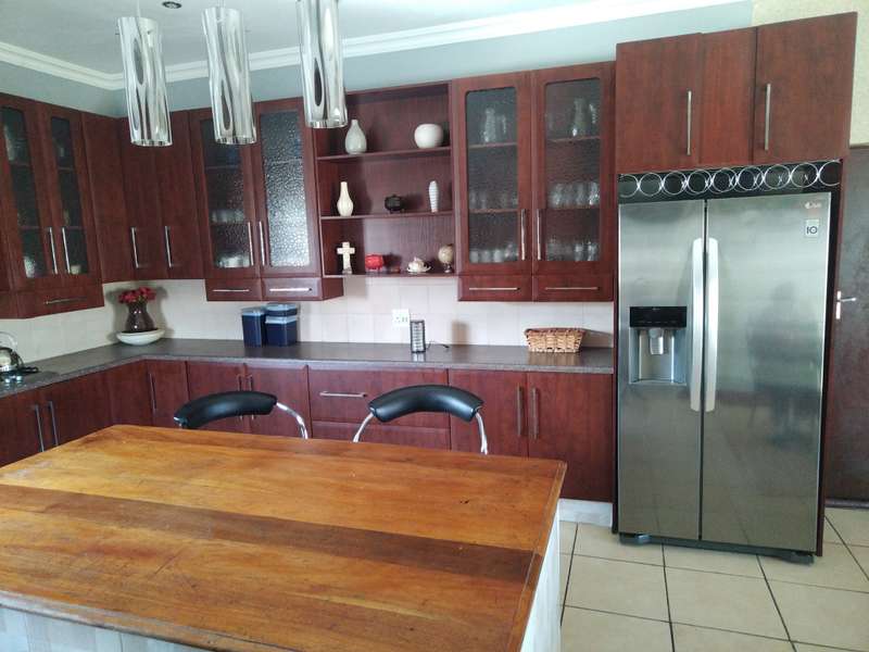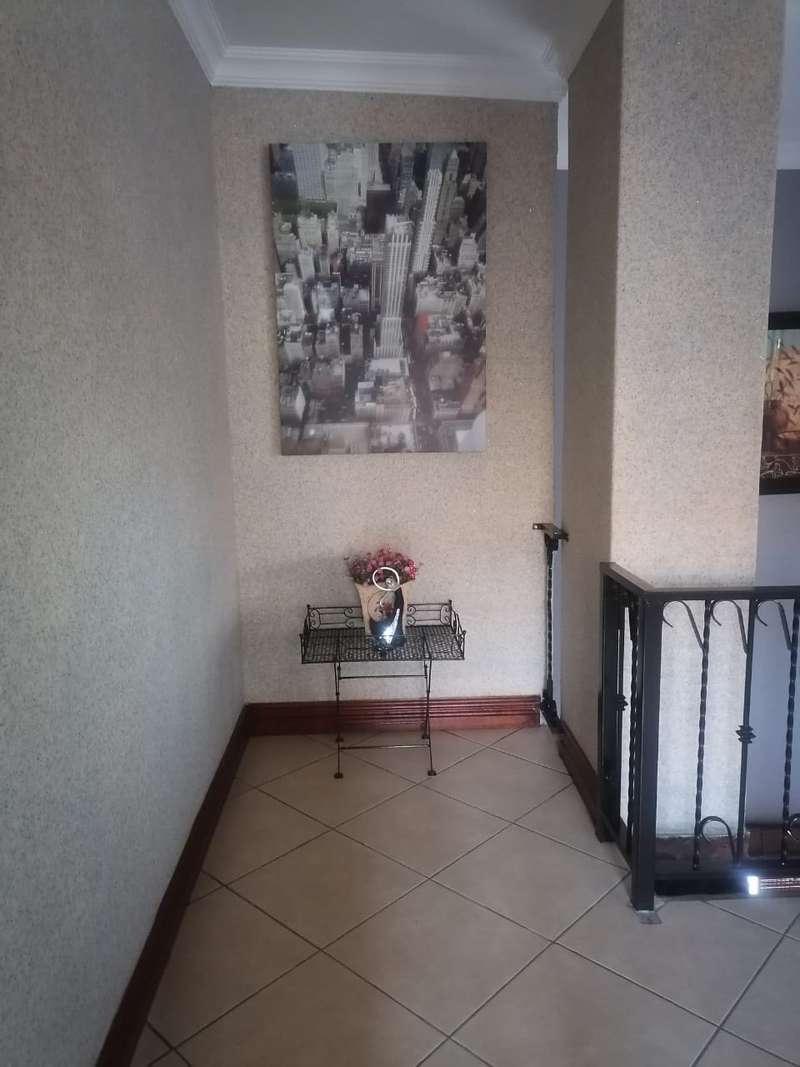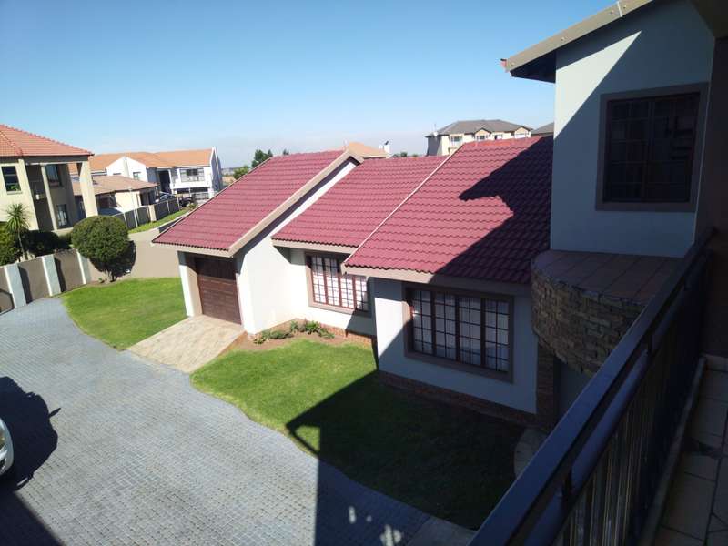 This elegant mansion is situated at an affluent gated security estate, it features four bedrooms all ensuit, the kitchen is to die for with the island countertop being a classic solid wood it comes with two stoves one is electrical the other is LPG gas. It has two balconies which are connected to a top floor Entertainment area that has an elaborate bar, outside Braai area on the balcony it features 3 living areas plus one study room/office. It has three automated garages and an automated gate. A well manicured garden, wich is easy to maintain Extras: Aircondistioner; LPG gas connection and Cylinder Cage; DSTV Connection; Jojo Tank... This property offers more than one can say, book your appointment to view today to avoid disappointme