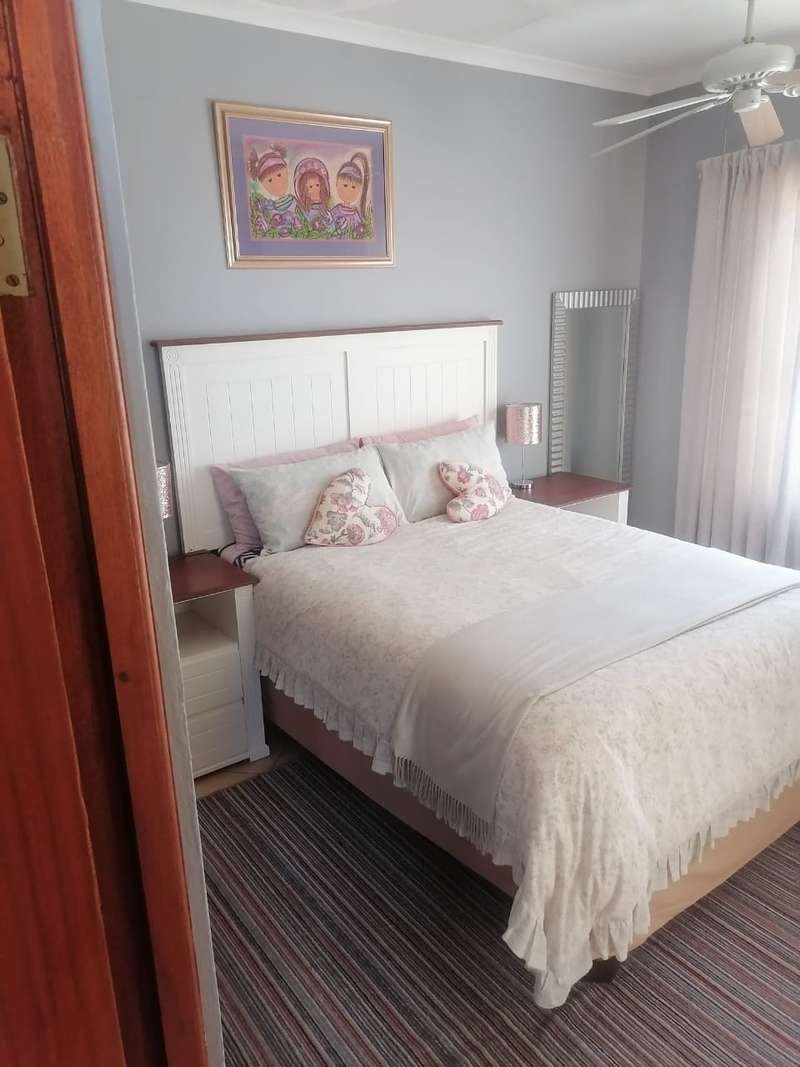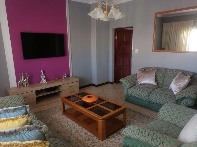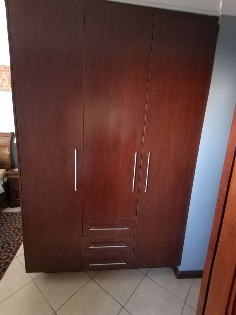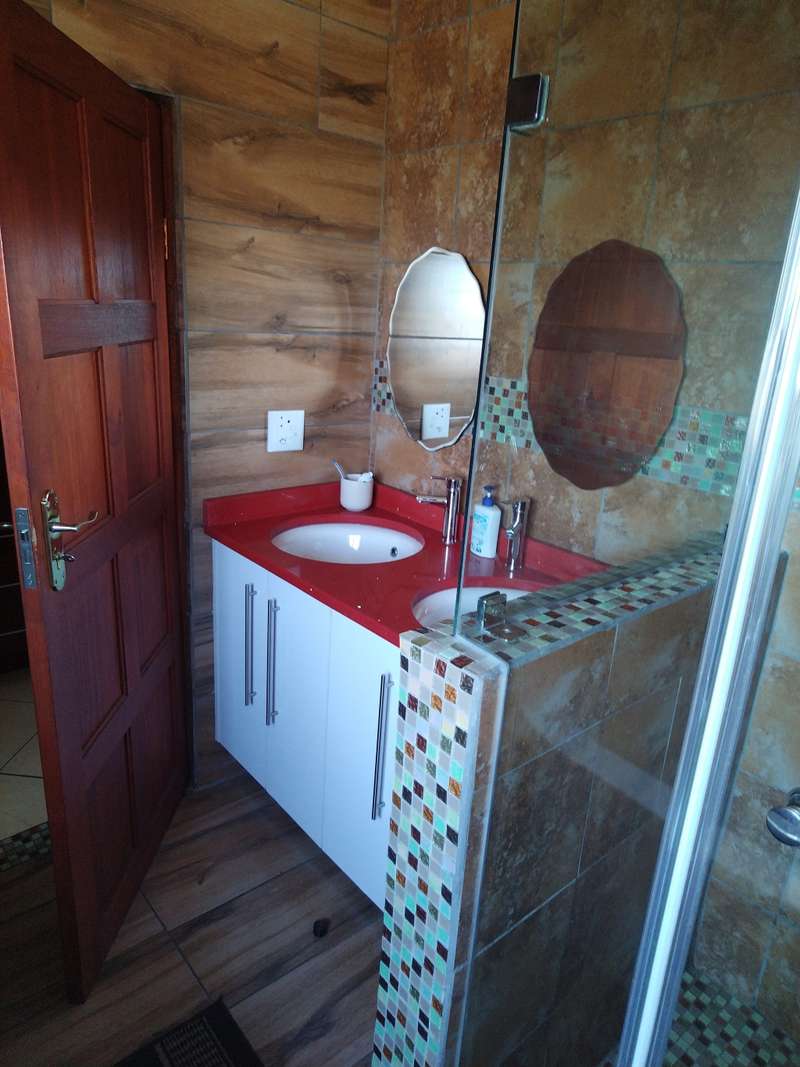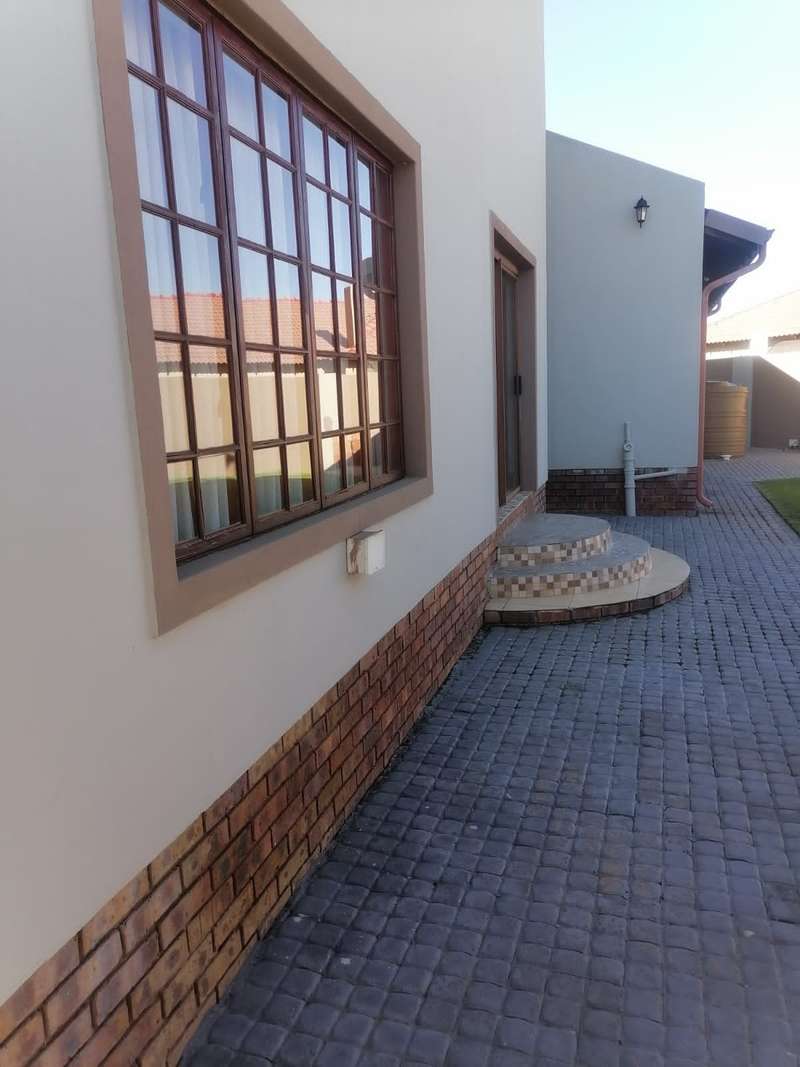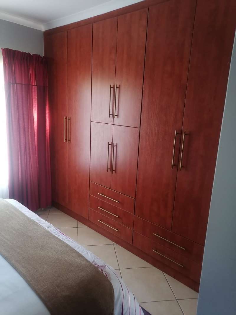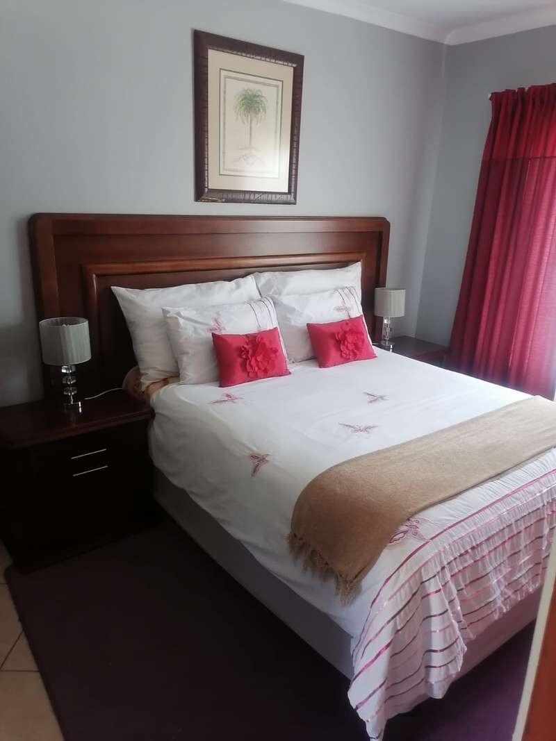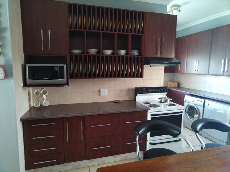 This elegant mansion is situated at an affluent gated security estate, it features four bedrooms all ensuit, the kitchen is to die for with the island countertop being a classic solid wood it comes with two stoves one is electrical the other is LPG gas. It has two balconies which are connected to a top floor Entertainment area that has an elaborate bar, outside Braai area on the balcony it features 3 living areas plus one study room/office. It has three automated garages and an automated gate. A well manicured garden, wich is easy to maintain Extras: Aircondistioner; LPG gas connection and Cylinder Cage; DSTV Connection; Jojo Tank... This property offers more than one can say, book your appointment to view today to avoid disappointme