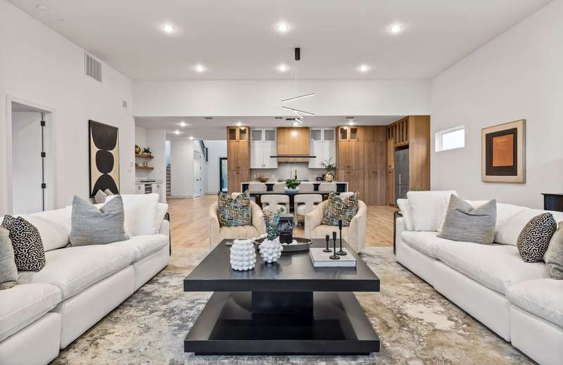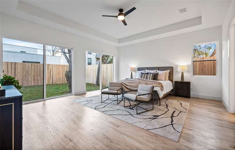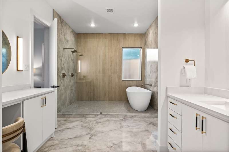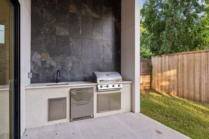 Step into your dream home in Bluffview a stunning new construction residence designed by renowned architect Adriana Meyer of JADE. This custom-built modern masterpiece seamlessly blends natural materials, earth tones, and light-filled spaces for a warm yet contemporary feel.With 5 bedrooms, 4,500+ sq ft, a dedicated home office, and expansive indoor-outdoor living, this home delivers both style and function for modern living. Architect-Designed Modern Home in the heart of Bluffview. Soaring vaulted ceilings, custom designer lighting, and hardwood floors throughout Walls of glass create a seamless catch-and-release flow between interior and outdoor living spaces. Open-concept living room with fireplace, vaulted ceilings & built-in coffee bar.Chefs dream gourmet kitchen: stone waterfall island, premium wood-grade cabinetry, built-in fridge, hidden pantry, gas range, and custom wine barSpacious game room upstairs connects to 4 bedrooms. Front bedroom opens to a private covered patio with panoramic Bluffview views.Luxurious downstairs primary suite with spa-like en suite: double vanities, freestanding tub, glass shower, private water closet, and massive walk-in closet. Outdoor living at its finest with built-in kitchen, custom tile patio, and generous wraparound backyardFunctional spaces include: large utility room, mudroom, and 2-car garage. Located just minutes from Inwood Village, Preston Hollow Village, Love Field, and the all-new Midway Manor Park with walking and bike trails. Experience the best of North Dallas living with upscale shopping, restaurants, and outdoor recreation right outside your door.