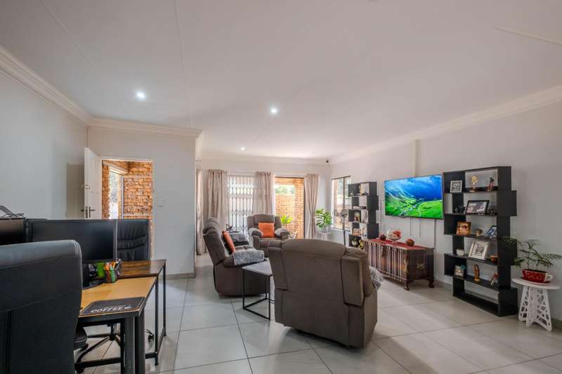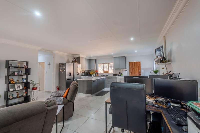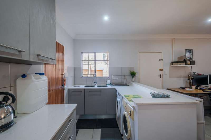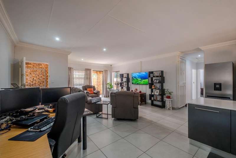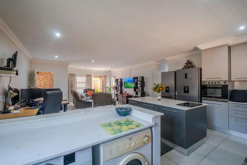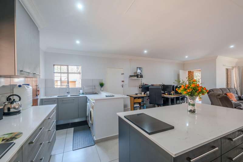 This well-looked-after 3-bedroom, 2-bathroom duet in Kilnerpark is move-in ready and offers true peace of mind to its next owners. Equipped with a serious solar system ?Çô 8 x 550W solar panels, an 8kW inverter, and 3 x 5.12kW batteries ?Çô you?ÇÖll enjoy uninterrupted power and major savings on electricity. The property also boasts excellent security with 8 cameras, an 8-port DVR with backup battery, 6 alarm sensors with door sensors, and remotes, as well as an electric gate and Trellidor security doors. Inside, the home has been fully renovated with modern finishes throughout. The brand-new kitchen is a showpiece, featuring stylish quartz countertops, a large island, ample built-in cupboards, a gas stove, and an electric oven. Both bathrooms have been tastefully upgraded ?Çô one with a shower, basin, and toilet, the other with a bath, basin, and toilet. Downlights and neat tiling throughout add to the modern feel. Outdoors, you?ÇÖll find a beautiful semi-closed patio, a neat low-maintenance garden, and two Wendy houses for extra storage. The property also includes a convenient outside toilet, perfect for garden use or staff. The double garage, shared driveway, and facebrick construction make this home as practical as it is stylish. This is a rare opportunity to own a meticulously cared-for home with everything in place ?Çô modern renovations, top security, and complete energy independence ?Çô right in the heart of Kilnerpark.