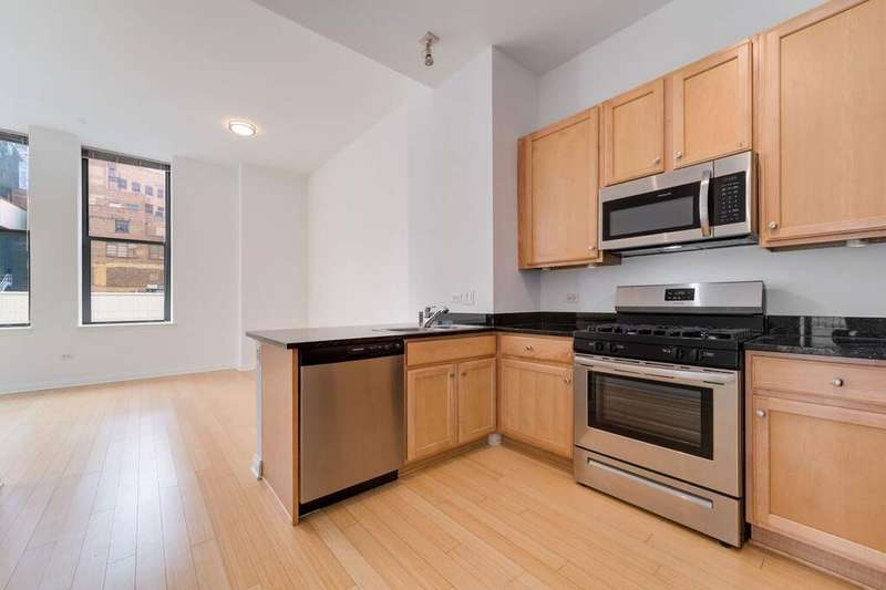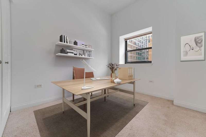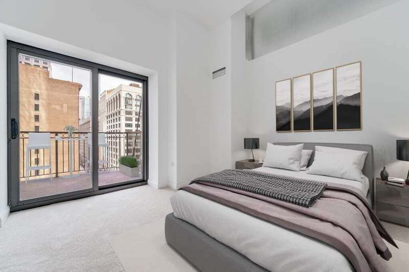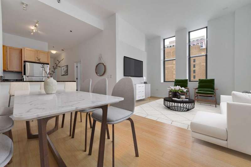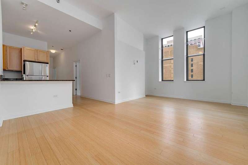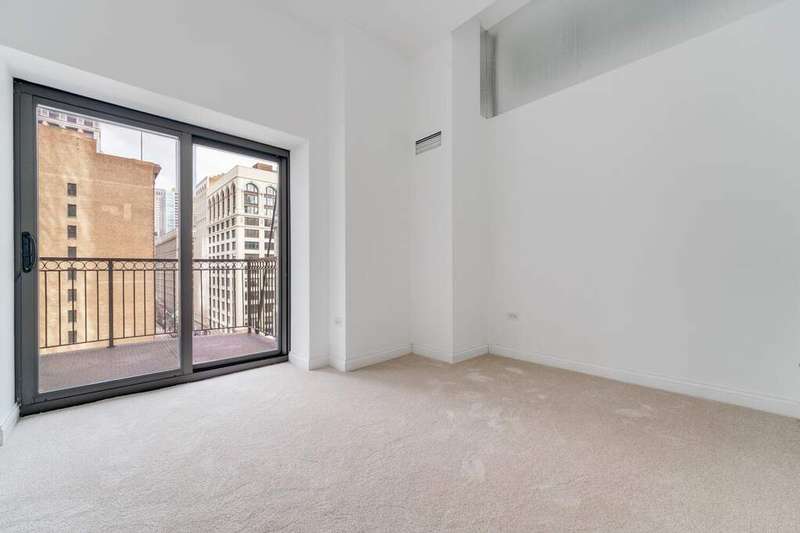 Elegant Loop Living! Fall in love with this stunning corner 2BR/2BTH loft in the Historic Metropolis Building, a Chicago gem designed in 1912 by Holabird & Roche Architects & converted in 2006. Soaring windows on the north & east light flood the home with natural light and offer picturesque views of State Street. The open kitchen features granite counter tops,a breakfast bar & stainless steel appliances. In-unit laundry completes the home. Start your mornings with coffee or wind down in the evenings on your private balcony off of the primary bedroom. You'll find great closet space and plenty of room to display art in the spacious foyer. This full-amenity elevator building offers professional door staff, on-site management & engineer,a fitness center, a party room, storage, bike room, rooftop w/ sundeck, BBQ & dog run. One deeded, heated garage valet parking space included in the price. All downtown theaters, Millennium Park, The Art Institute, Maggie Daley Park & the Chicago River Walk are all within easy walking distance. Work from home or walk to work! Owner-occupied only, no rentals or investors.