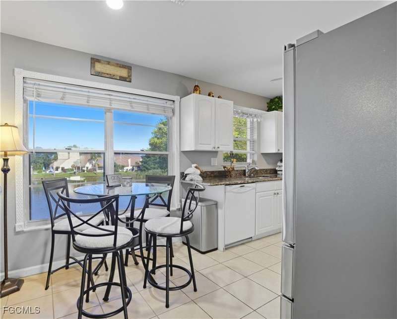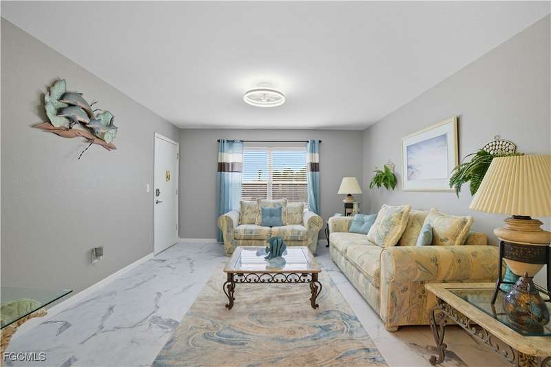 Welcome to 6836 Sandtrap Drive #3, the only furnished, updated unit currently being offered in this community. Myerlee Garden Condos is an active 55+ community nestled in the heart of South Fort Myers. Are you looking for the perfect 2 bed/2 bath Winter getaway with a beautiful view of the lake? Look no further. This condo has been tastefully updated throughout. A coastal style kitchen with stainless steel appliances, including a wine chiller will make entertaining a joy. The lanai area has been opened up for added versatility, which lends an additional sitting area. A newly purchased stackable washer and dryer will make laundry a breeze. The community offers a wide variety of activities, including tennis and pickleball teams, water aerobics, and various clubs. For you golf enthusiasts, there is an executive public golf course just steps away. Social events, including dances, holiday dinners, and poolside parties, are always on the calendar. Myerlee Gardens is a short ride to downtown Fort Myers, close to numerous restaurants & shops, and the popular SW Florida beaches are minutes away. Schedule your showing today