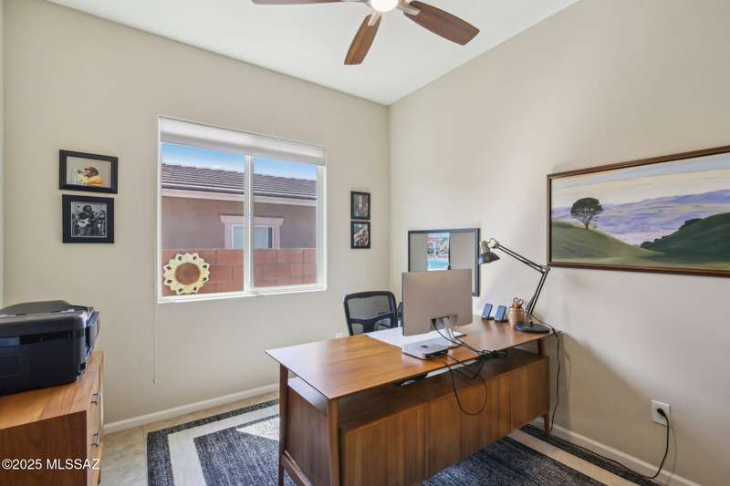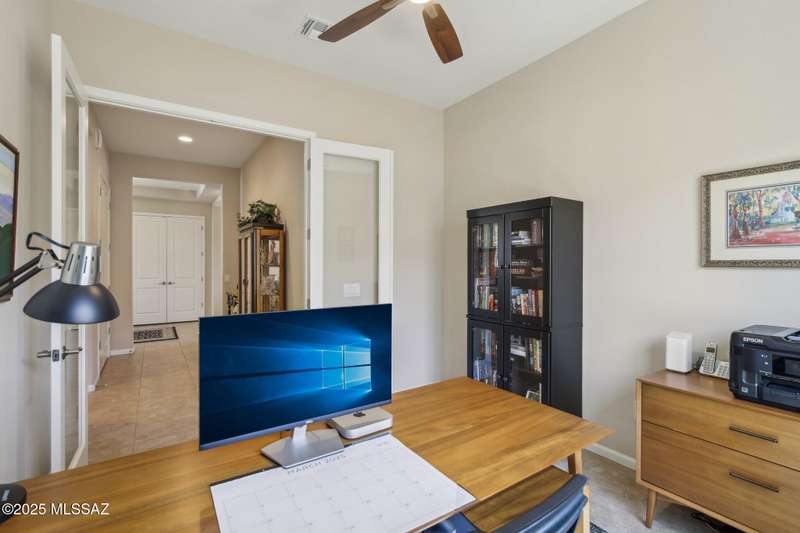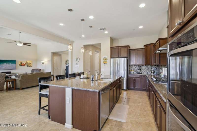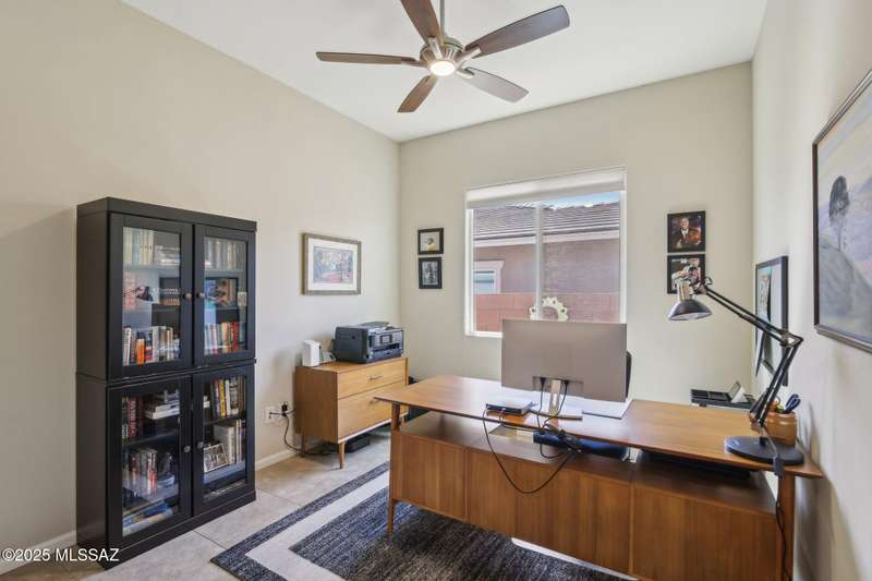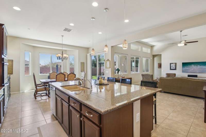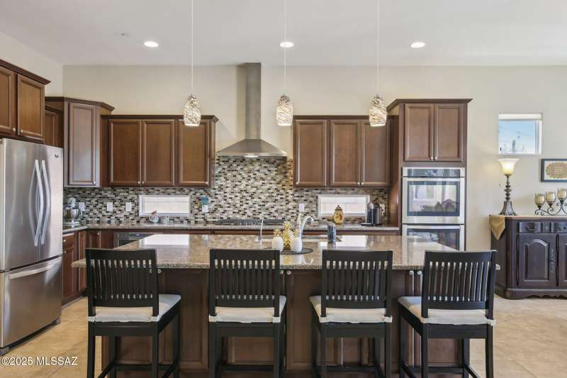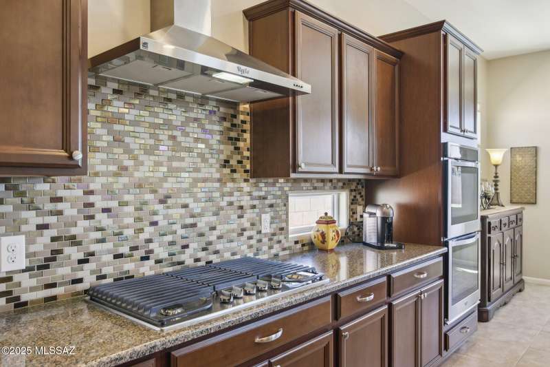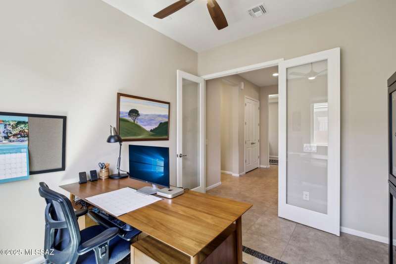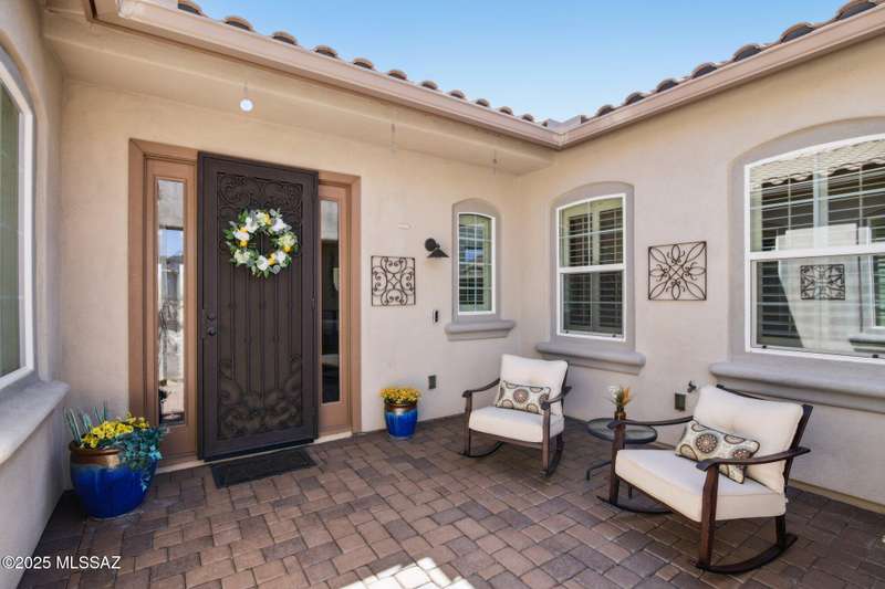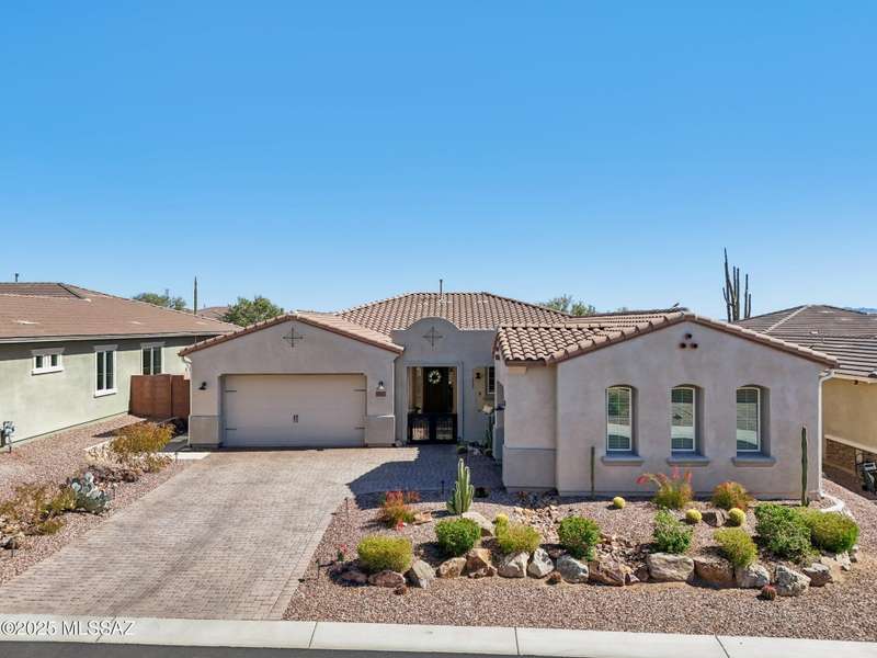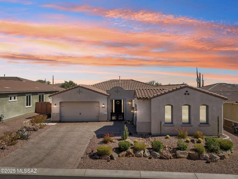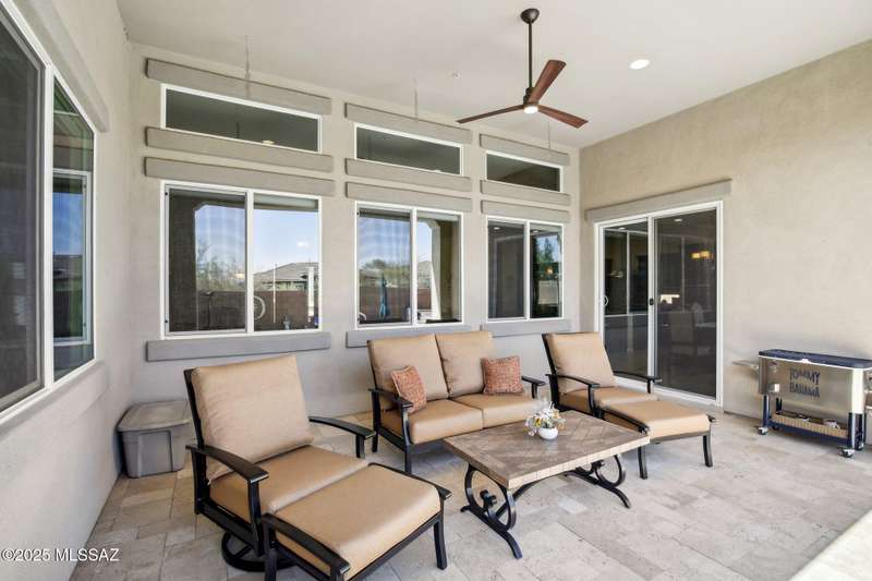 MAJOR PRICE REDUCTION. Cool off in style this summer in this stunning home in gated Golden Barrel at Dove Mountain. The resort-style backyard is built for Arizona living--sparkling pool, covered patio, travertine pavers, artificial turf, Ramada with sun shade, and serene desert views. Inside, enjoy an open great room layout with a chef's kitchen featuring a gas range, double ovens, granite counters, and walk-in pantry. Includes 3 bedrooms, 2.5 baths, and a den with custom French doors. The luxurious primary suite offers dual vanities, a large walk-in shower, and custom closet. 3-car garage, tile floors, and upscale touches throughout. The quiet cul-de-sac location is just steps from trails, a dog park, tot lot, volleyball, and more--everything you need for a perfect summer.