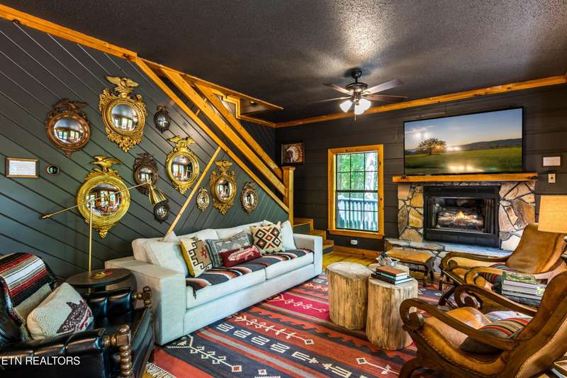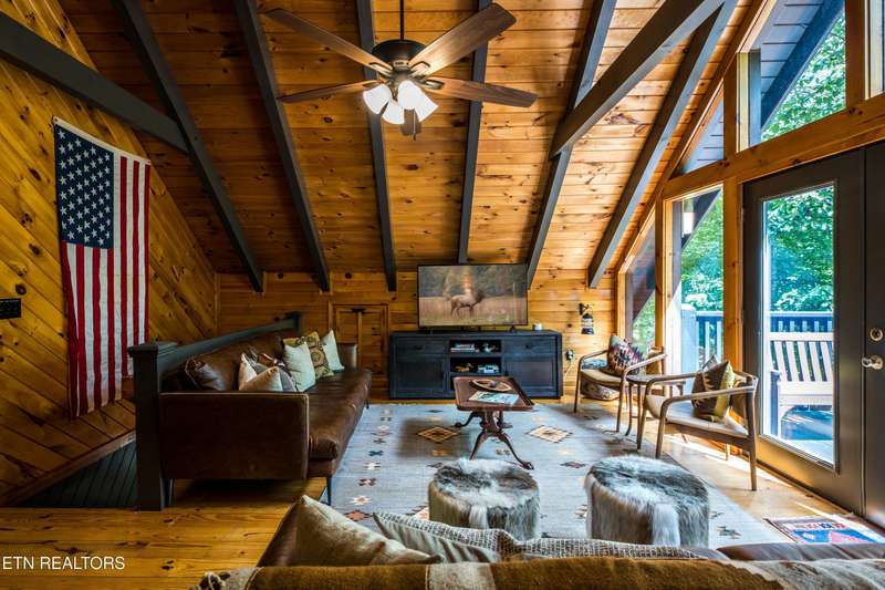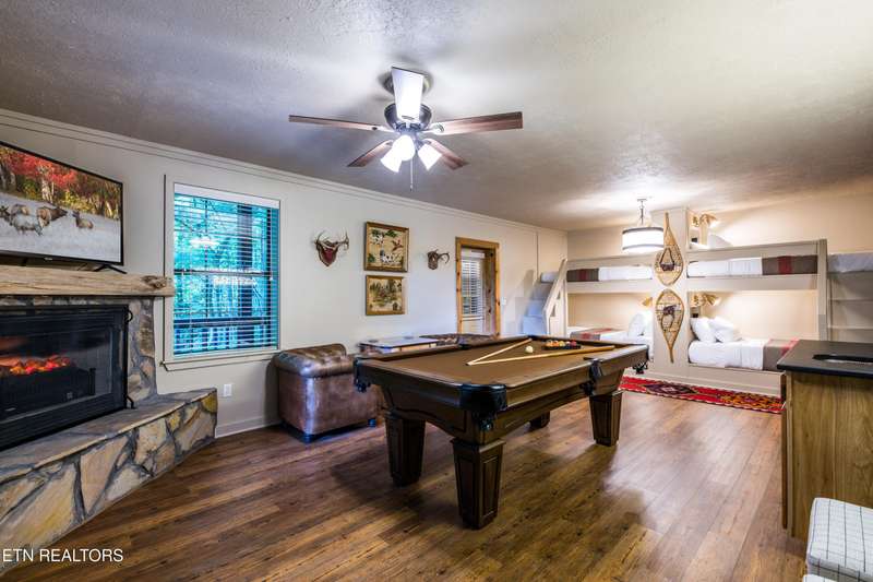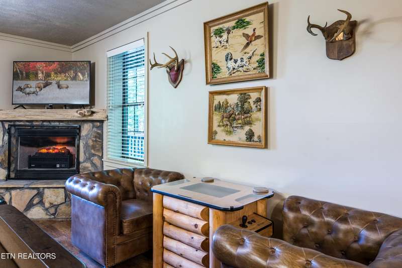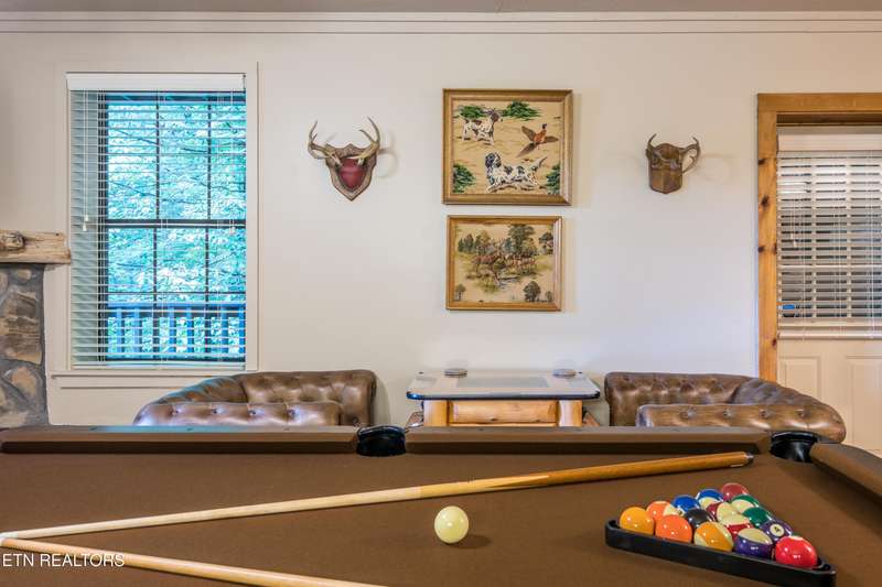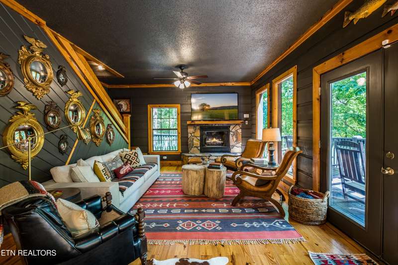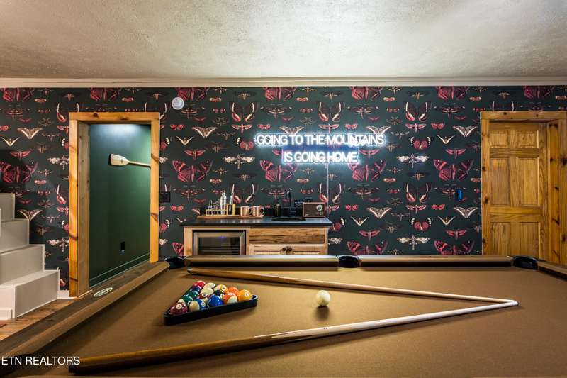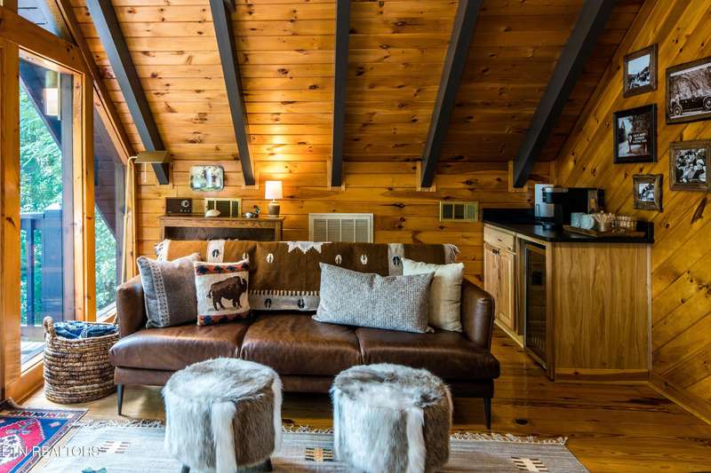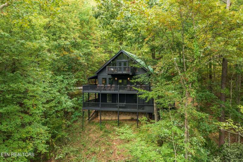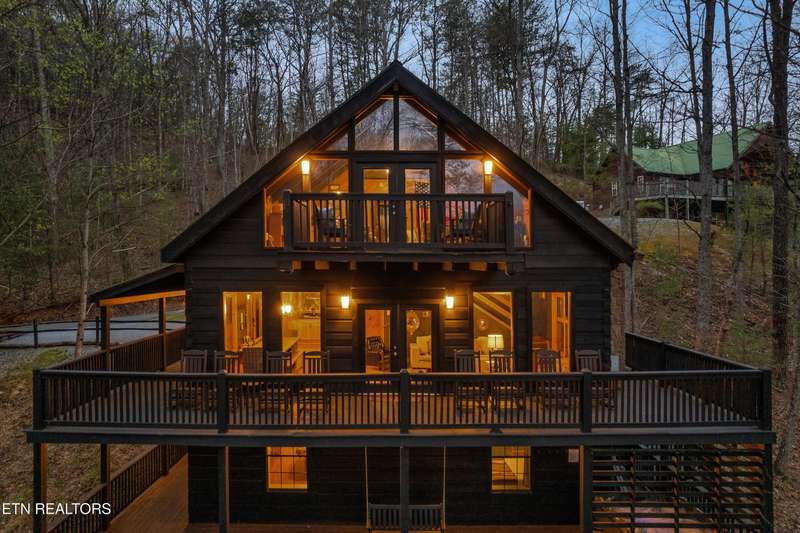Welcome to your dream mountain retreat in the heart of Wears Valley-a fully renovated, professionally designed cabin on nearly one acre with year-round views and complete privacy. This stunning three-bedroom, three-bathroom home features tongue-and-groove walls and ceilings throughout, blending rustic charm with modern updates. Recent upgrades include a new HVAC system, reinforced decks in 2024, plus new gutter guards in 2023. A complete 2021 remodel brought new kitchen appliances, cabinets, countertops, lighting, tile showers, updated bathrooms, LVP flooring, custom built-in bunk beds with lights and charging stations, and new indoor and outdoor furnishings. Only the original wood floors, walls, roof, and AC units remain, preserving the cabin's authentic character. The main level offers a king bedroom, a beautifully tiled full bathroom, a fully equipped kitchen with Keurig and drip coffee makers, a dining area for ten, and a cozy living room with a gas fireplace and Smart TV opening to a wrap-around deck. Upstairs features a queen bedroom with balcony access, a second full bathroom, and a loft living area with a Smart TV, coffee bar, beverage cooler, and library. The lower level includes a queen bedroom, a full bathroom, and a bunk/game room with four built-in twin beds, a pool table, arcade, wet bar, electric fireplace, Smart TV, and direct access to a deck with a six-person hot tub with a brand new pump. Privately located with the nearest neighbor 50 yards away, this cabin offers seclusion yet unmatched convenience-just four miles from the Great Smoky Mountains National Park and minutes to Townsend, Pigeon Forge, Dollywood, and Gatlinburg. The property also includes access to a nearby catch-and-release fishing pond and seasonal use of Honeysuckle Meadows Pool & Deli with a membership. Additional features include a 1500-gallon water storage tank and FloMeter water filtration system, with the potential for even better views through selective tree clearing. This cabin is not only move-in ready but also a proven investment, performing in the top 5% of Airbnb listings with 131 five-star reviews, showcasing its exceptional quality and guest experience. Don't miss this opportunity to own a luxurious mountain getaway or high-performing rental-schedule your private showing today and discover the best of Smoky Mountain living.