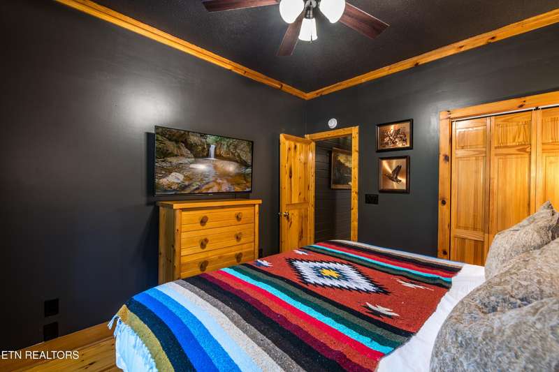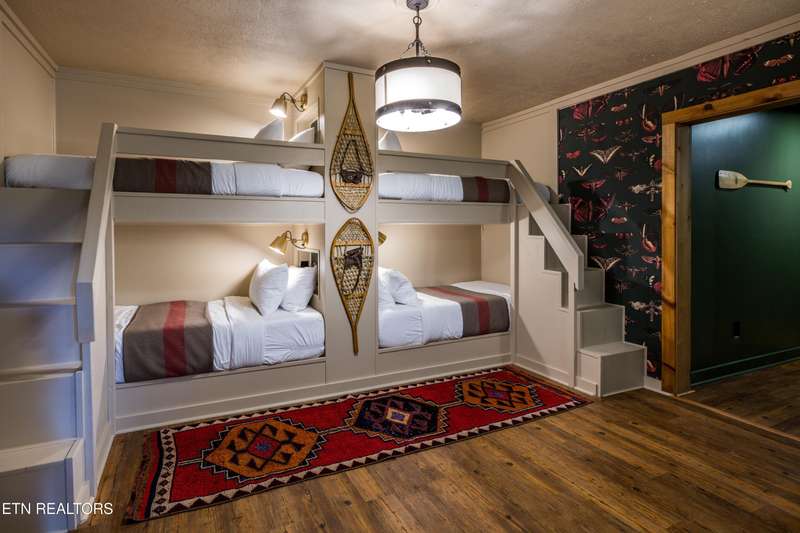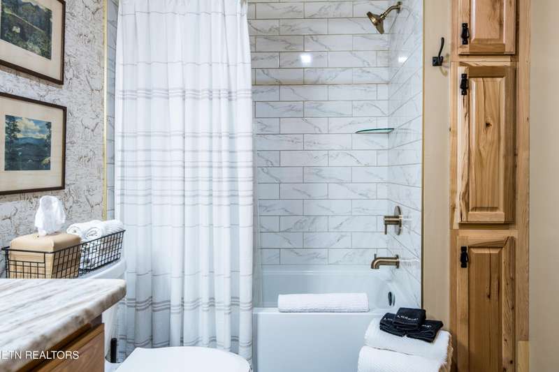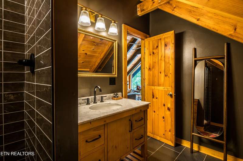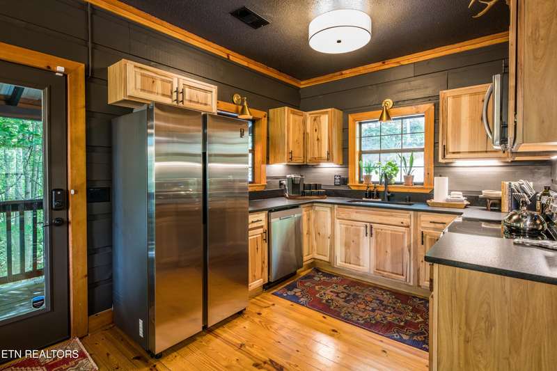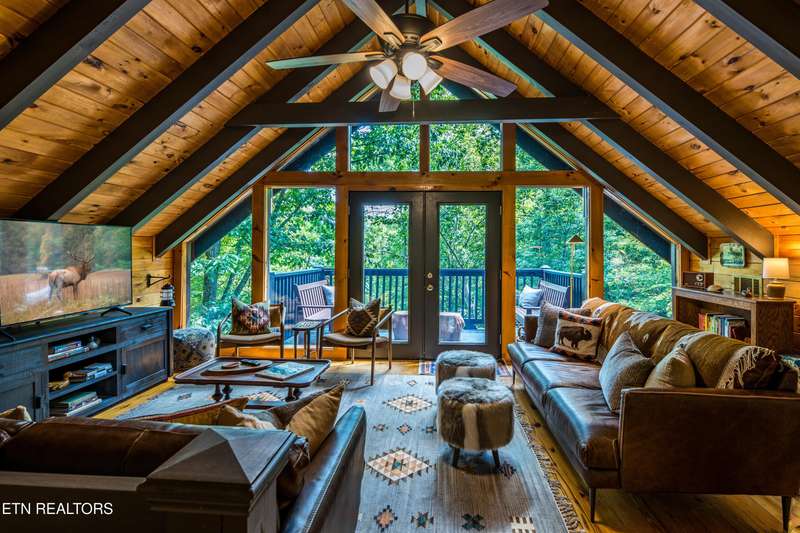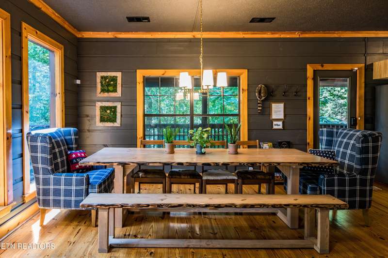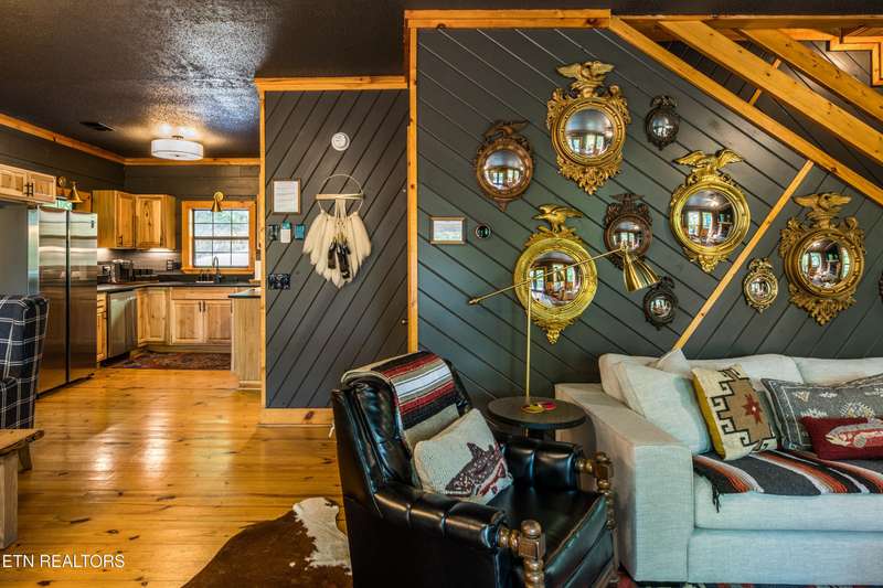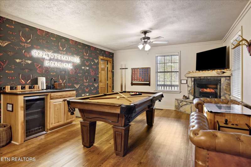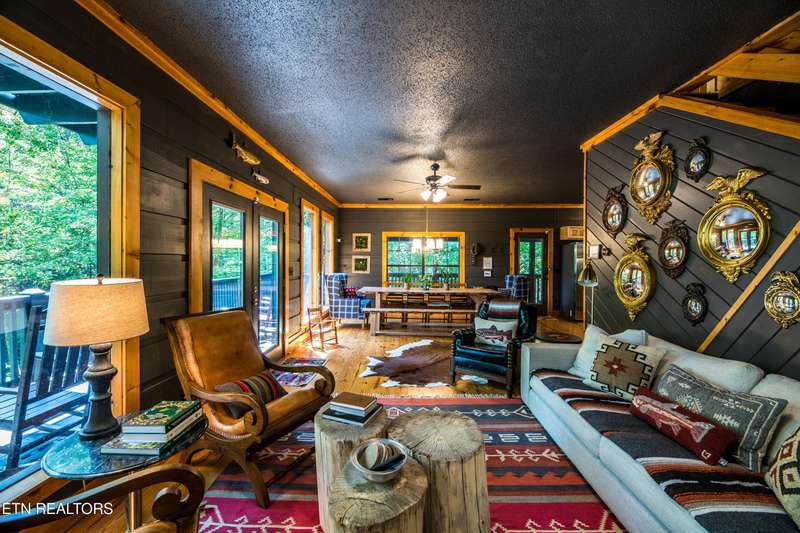 Welcome to your dream mountain retreat in the heart of Wears Valley-a fully renovated, professionally designed cabin on nearly one acre with year-round views and complete privacy. This stunning three-bedroom, three-bathroom home features tongue-and-groove walls and ceilings throughout, blending rustic charm with modern updates. Recent upgrades include a new HVAC system, reinforced decks in 2024, plus new gutter guards in 2023. A complete 2021 remodel brought new kitchen appliances, cabinets, countertops, lighting, tile showers, updated bathrooms, LVP flooring, custom built-in bunk beds with lights and charging stations, and new indoor and outdoor furnishings. Only the original wood floors, walls, roof, and AC units remain, preserving the cabin's authentic character. The main level offers a king bedroom, a beautifully tiled full bathroom, a fully equipped kitchen with Keurig and drip coffee makers, a dining area for ten, and a cozy living room with a gas fireplace and Smart TV opening to a wrap-around deck. Upstairs features a queen bedroom with balcony access, a second full bathroom, and a loft living area with a Smart TV, coffee bar, beverage cooler, and library. The lower level includes a queen bedroom, a full bathroom, and a bunk/game room with four built-in twin beds, a pool table, arcade, wet bar, electric fireplace, Smart TV, and direct access to a deck with a six-person hot tub with a brand new pump. Privately located with the nearest neighbor 50 yards away, this cabin offers seclusion yet unmatched convenience-just four miles from the Great Smoky Mountains National Park and minutes to Townsend, Pigeon Forge, Dollywood, and Gatlinburg. The property also includes access to a nearby catch-and-release fishing pond and seasonal use of Honeysuckle Meadows Pool & Deli with a membership. Additional features include a 1500-gallon water storage tank and FloMeter water filtration system, with the potential for even better views through selective tree clearing. This cabin is not only move-in ready but also a proven investment, performing in the top 5% of Airbnb listings with 131 five-star reviews, showcasing its exceptional quality and guest experience. Don't miss this opportunity to own a luxurious mountain getaway or high-performing rental-schedule your private showing today and discover the best of Smoky Mountain living.