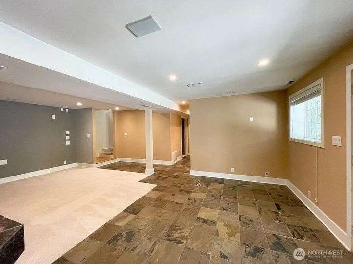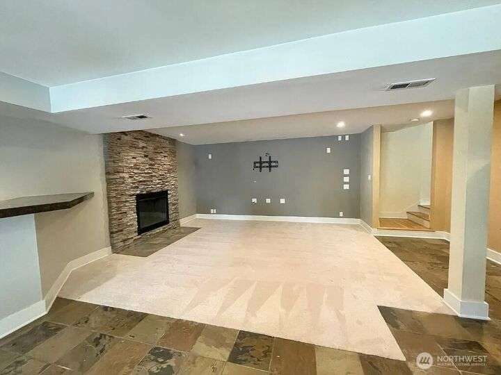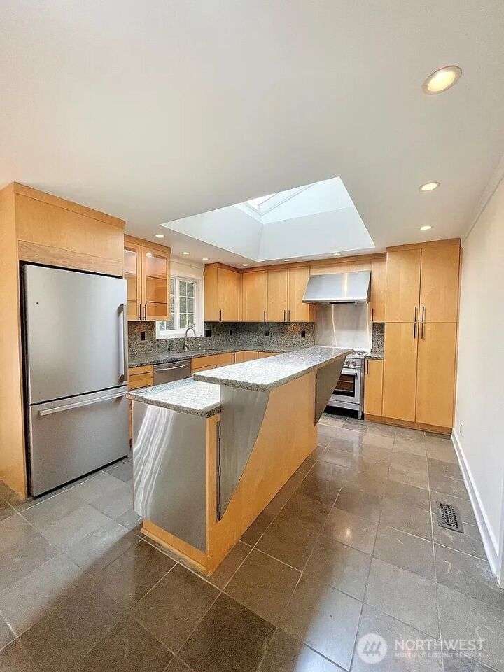 Avail. Now 4 bdrm, 2 bath home located in a quiet, charming neighborhood close to local elementary. Large backyard w/multi-level decks & grass area. Well maintained one level w/fully finished basement that stays cool on warm days, two-car garage, large kitchen w/ professional grade stove/oven, spacious island opens to eating nook & living room. 3 bedrooms up & 4th bedroom down. Rec room w/entertainment bar. Ample lighting w/3 solar tubes on the main floor & large skylight directly above kitchen. Dedicated laundry room, duel shower heads in the downstairs bathroom and a large storage room. Lake Washington SD. Min. to I-405, Juanita beach & downtown Kirkland. Portable AC.