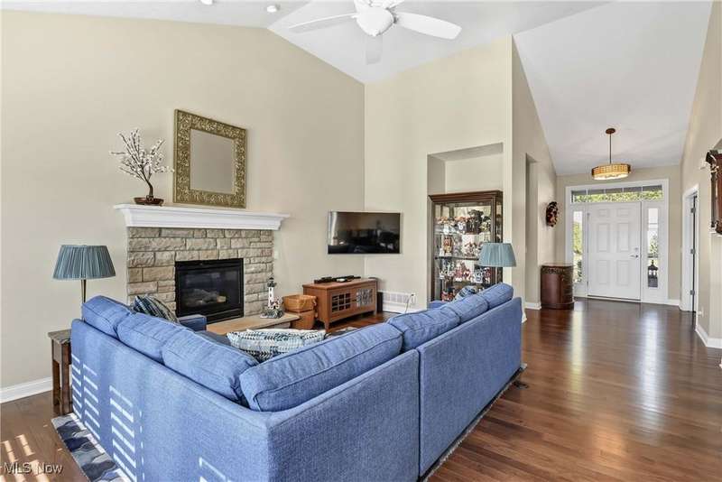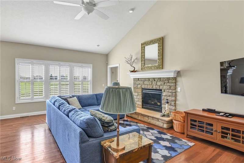 Pointing You Home to this elegant 2bdrm, 2bth ranch w/an office in Avon's prestigious Redtail golf community?designed with comfort, convenience, & lifestyle in mind. This home overlooks Hole #3! Whether you're ready to downsize or simply craving a low-maintenance retreat, this home offers the perfect blend of luxury & ease. The open floor plan features a beautifully updated eat-in kitchen w/granite countertops, stainless steel appliances & breakfast bar?ideal for casual mornings or hosting family dinners. A formal dining rm flows into the sun-drenched two-story great rm, where a stunning stone fireplace & wall of windows frame serene views of the golf course hole #3 & pond. The spacious master suite is a true retreat, complete w/high ceilings, gas log fireplace, two walk-in closets, double sinks & large walk-in shower. A 2nd bdrm & full bth offer comfort for guests, while the versatile office w/French doors could easily transform into a third bdrm. Beautiful installed hardwood floors & & fresh paint throughout the home-2023. Additional highlights include a 1st flr laundry rm, full basement w/epoxy flooring thru-out & partially finished area that is perfect for fitness equipment or craft rm! Plenty of room in the basement to add a larger rec rm, bedroom &/or a bath! Extra-large 2-car garage w/epoxy flooring & abundant storage. As a Redtail resident, you'll enjoy resort-style amenities including an outdoor pool, clubhouse with fine dining, many activities thru-out the year, fitness center, bocce ball, tennis & pickleball courts! Located minutes from Avon's shopping and dining, and just 20 minutes to Cleveland Hopkins Airport, this home offers the perfect next chapter for those seeking ease, elegance, and community. Quick possession!
