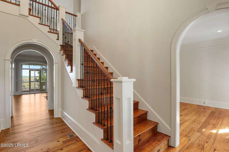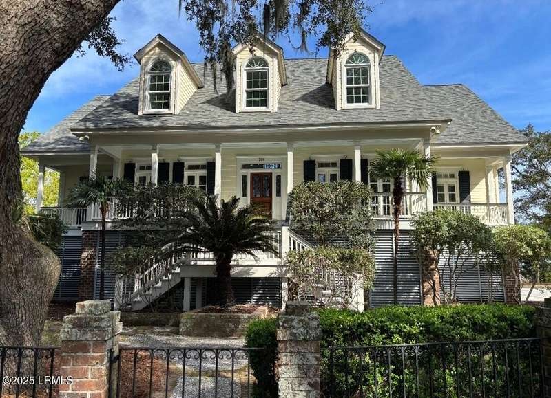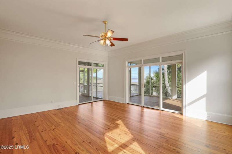 Located at 381 Fripp Point Road, this stunning Lowcountry home offers over 4,300 square feet of luxurious living space with breathtaking views of the marshes & deepwater of Coffin Creek & the Morgan River. Enjoy spectacular vistas of the southern tip of the Ace Basin, Edisto Island, and Morgan Island, making this a truly remarkable waterfront property. The home features a spacious and open layout, with the primary suite conveniently located on the first floor. The bedroom has a screened in porch and overlooks the stunning view. The primary bathroom offers a luxurious steam shower, a walk-in whirlpool tub, and elegant fixtures. The large gourmet kitchen boasts custom honey maple cabinets, granite countertops, Subzero and stainless steel appliances, as well as a large bar area in the great room, complete with a new ice maker, wine refrigerator, and sink perfect for entertaining. The great room includes a gas fireplace and offers a seamless connection from this room to the deck to the expansive outdoor scenery. Flow to the beautiful living room and formal dining room for extra entertainment areas. Upstairs, you'll find four freshly painted and newly carpeted bedrooms, 2 full baths and a spacious common area. The interior has been freshly painted and features newly refinished heart pine floors throughout. The primary bedroom has a screened in porch and overlooks the stunning view. This home is designed for convenience, with an elevator providing easy access from the garage to the top floor, full house generator, a central vacuum system, and two Rinnai hot water heaters. Other notable features include lovely wainscoating, crown molding, beveled glass windows and transoms, a laundry chute straight in to the laundry room from the upstairs bedrooms, an outdoor shower,expansive decks, and ample storage space, including a walk-in attic. The deepwater dock ideal for boating and waterfront activities. Not included in the square footage is an expansive 2,500 + square feet of garage space that offers room for two cars and more, along with a massive amount of storage. This versatile space includes two more separate rooms with a full bath, perfect for a variety of uses such as storage, an exercise room, or a garden room. Limitless possibilities await. There's ample room for boats, kayaks, sporting equipment, or even game space. Additionally, a large room features wood flooring, a HVAC system, full bath, kitchenette, built-in bed, ideal for a home office or guest suite. This exquisite property offers the perfect combination of luxury, comfort, privacy, quiet and unparalleled views in one of the most desirable locations in the Lowcountry. This material is based upon information, which we consider reliable, but because it has been supplied by third parties, we cannot represent that it is accurate or complete, and it should not be relied upon as such.