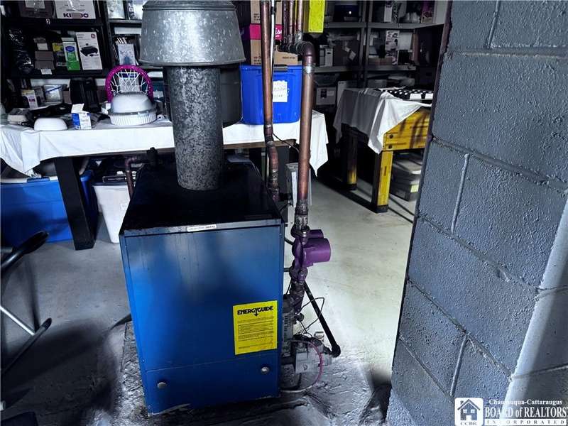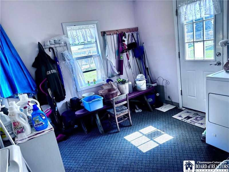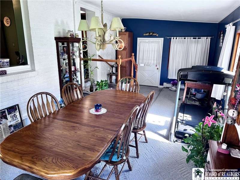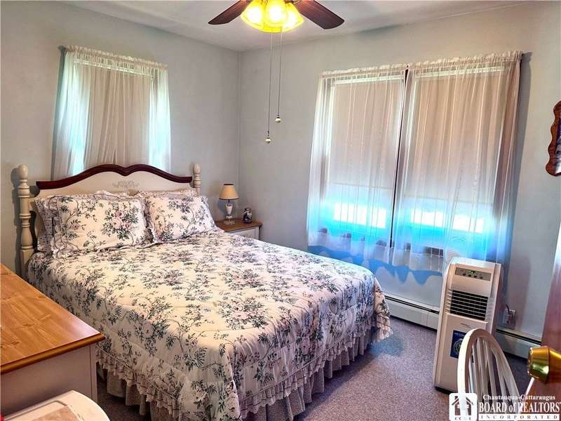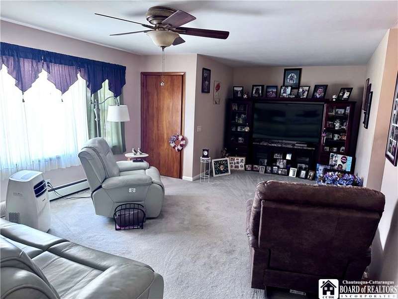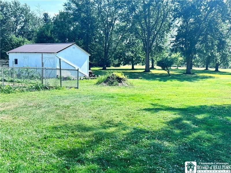 Village of Fredonia 3BR/2Bath Ranch on 1.8 Acres!This beautifully maintained brick and vinyl-sided ranch offers a spacious layout and sits on a generous 1.8-acre lot! Featuring a large living room, entertainment room, and formal dining room, this home is ideal for everyday living and entertaining. The modern oak kitchen boasts quartz countertops and ample cabinet space. Enjoy energy-efficient tilt-in windows and a 3-zone hot water baseboard heating system. The extra-clean, waterproofed basement includes a full bathroom and glass block windows?perfect for additional living or hobby space. Additional highlights include an attached, interior finished, garage with attic storage, a 16' x 24' shed/workshop, and a partially fenced yard ideal for pets. Gutter guards add to the home's easy maintenance. Exceptional condition inside and out?ready to move right in!*Laundry room & back Entertainment room square footage of 369 sq are included in the total square footage of 1489. Tax records of 1120 did not include those rooms, agent measured)(Both sets of washers/dryers, stand up and chest freezers and garage refrigerator also remain)