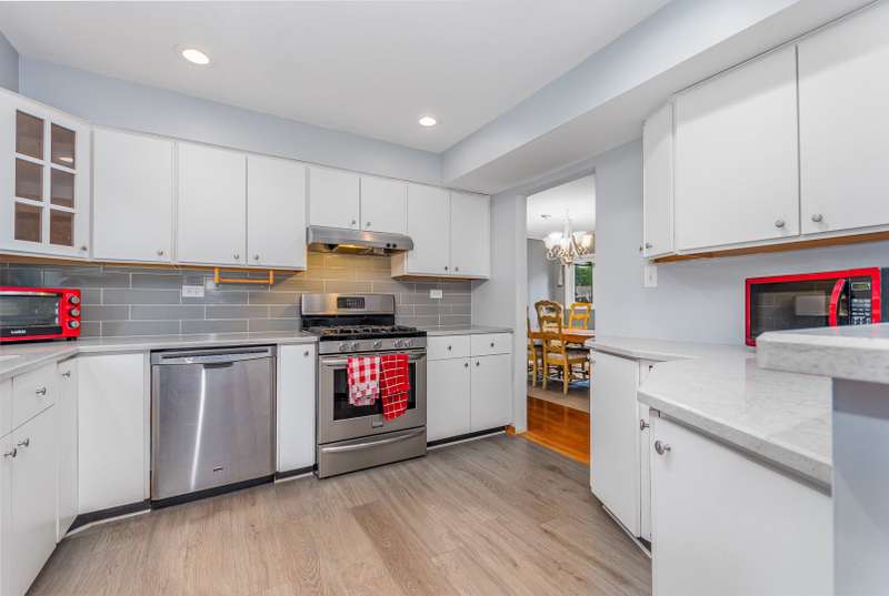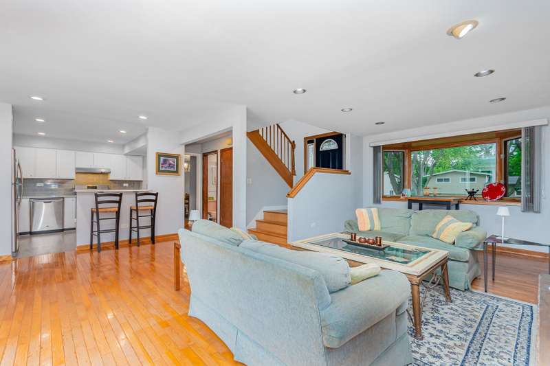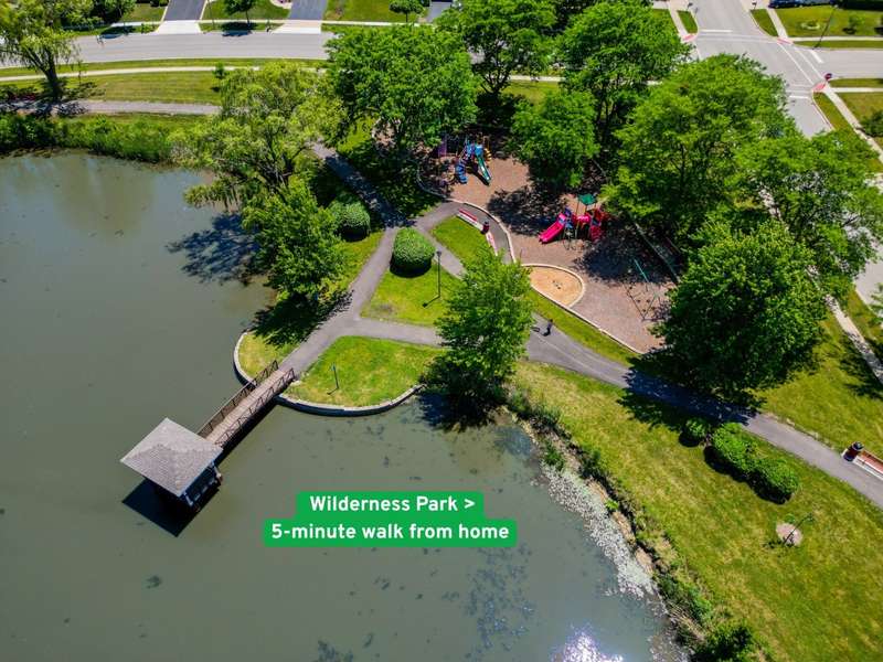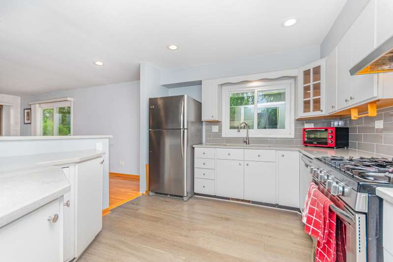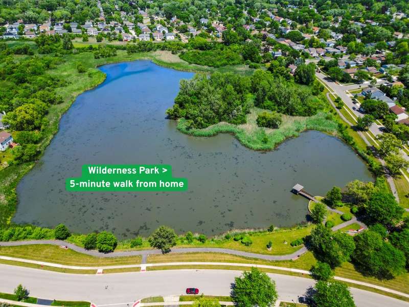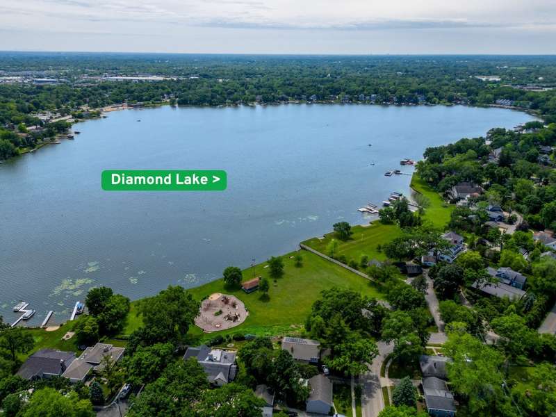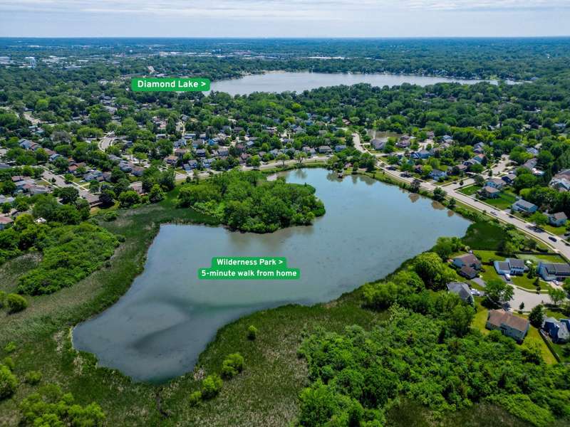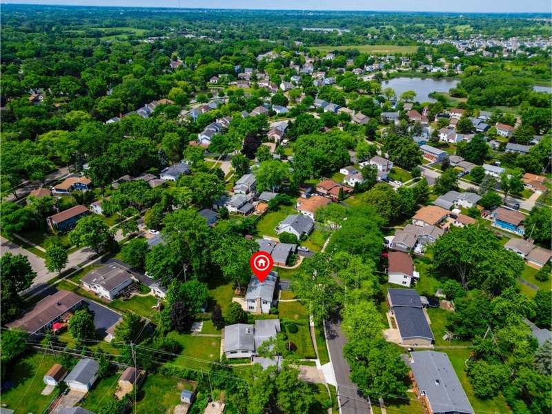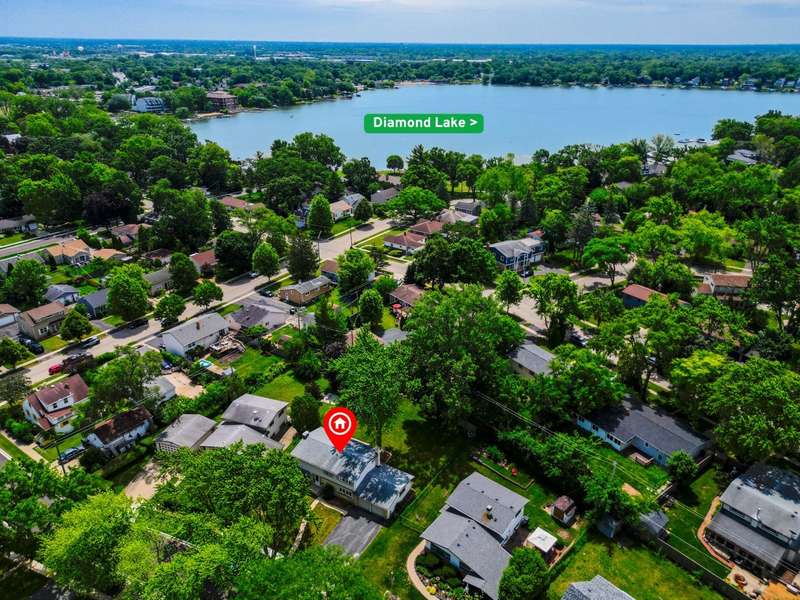 Welcome to 413 North Shore Dr in Mundelein, a charming single-family home just a 5-minute walk from beautiful Diamond Lake. With 5 spacious bedrooms upstairs, including a professionally permitted remodel completed in 2003 (note: the 5th bedroom will need a closet), this home offers versatility for growing needs. Enjoy a warm and inviting open layout featuring a bright bay window in the front living area, brand new carpet throughout the entire upstairs, and fresh paint throughout. The fully remodeled kitchen (2020) is a standout with quartz countertops, stainless steel appliances, and modern finishes, perfect for everyday living and entertaining. Hardwood floors run throughout the entire home, including under the new carpet upstairs. There are two full bathrooms, one on the main level and one upstairs, offering convenience for guests. Step outside to a fully fenced backyard with a patio, perfect for summer gatherings, and a storage shed for extra space. The home sits on a 0.22-acre lot and includes an attached 2-car garage. Other highlights include a roof approximately 10 years old, a permitted room addition completed in 2003 by professional contractors, and a permitted shed. Located less than a mile from the train station for easy city commuting and close to the Mundelein Park District and local amenities. This home is ideal for anyone looking to settle into a well-maintained, move-in-ready space in a desirable location near the lake.