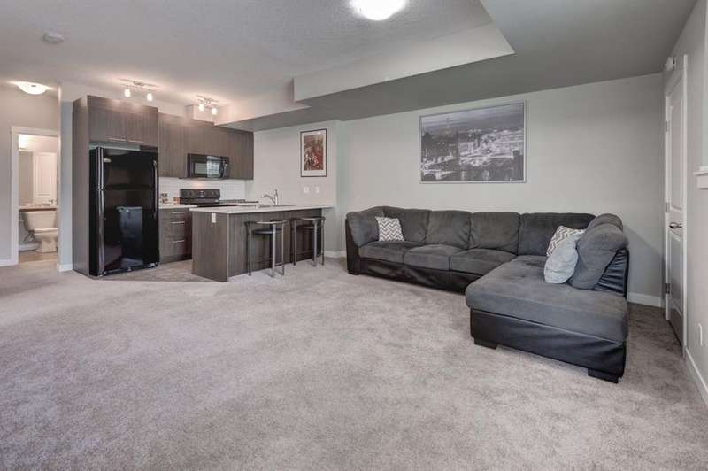 INVEST IN YOU! Excellent opportunity for the first time home buyer or investor. You could own this home for as little as $1170.10/mo. 10% downpayment. 5 year term. 3.79% Interest rate. 25 year Amortization. OAC* Welcome to Chestermere Station where LOCATION, CONVENIENCE, and LIFESTYLE are just outside your front door. This well maintained 2 bedroom unit is ideal for those with an active lifestyle. It is conveniently located across the street from shopping and amenities. It's a 5 minute walk to John Peake Memorial Park & CHESTERMERE LAKE. Under 5 minutes to take FIDO for a walk to Steve King Memorial Dog park or a 10 minute walk to the Chestermere Off Leash Area. PRAIRIE WATERS ELEMENTARY & ST GABRIEL THE ARCHANGEL SCHOOL. are a modest 10 minute walk from Chestermere Station! Enjoy the extensive pathways and parks throughout the community and saver the rest of the summer days at Chestermere Lake. This bright lower level unit is located directly across from the Gazebo and Greenspace. Enjoy the shade of your cool covered patio area while you grill up a dinner. Or, walk over to the Gazebo and soak up some sunshine. The spacious front foyer ushers you into this open concept unit. Natural light spills through the large windows and illuminates the generous sized living room. The sleek modern kitchen is host to a sizeable peninsula and breakfast bar. A comfortable sized master bedroom with several options for furniture placement. Roomy second bedroom. 4 piece bath. And, a large laundry and storage room. The perfect size to host your bike. The assigned parking stall is just outside the unit with ample visitor parking throughout the complex. This 747 sq ft, 2 bedroom condo offers ample space for the single professional, couple, or roommates. Priced right for first time home buyer or investor with modest condo fees of $211.31/month. This unit comes fully furnished for your convenience. Pet friendly with board approval. A short drive to East Hills Shopping and Entertainment. Quick access to 17 Ave or Highway 1. An exceptional location for those working downtown with an approximate 15 minute commute to Rundle Train Station. Contact your favourite realtor today to call this home your own.