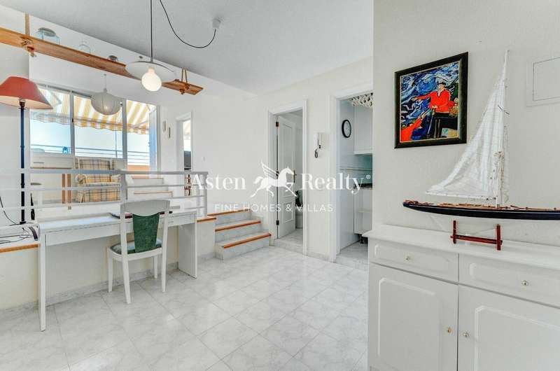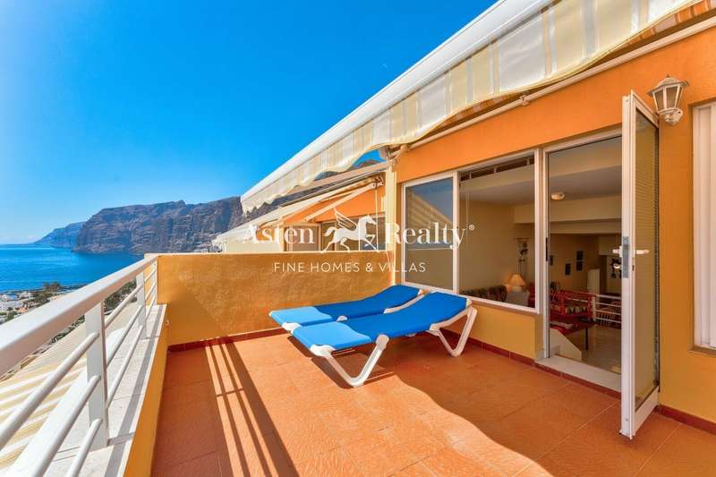 We present this incredible opportunity, a property consisting of two adjoining apartments in Los Acantilados de los Gigantes, PC: 38683. Santiago del Teide, Tenerife south. Two adjoining apartments for sale together, located on the seventh and last floor of the building. The total area of the property consists of 200 m2 built, of which 100 m2 are useful, 40 m2 of terrace, 30 m2 of garage and 30 m2 of storage rooms. The property has the versatility to be unified simply by removing a wall to have a large room on two levels and removing the wall that divides the two terraces, and also make an extra room in the second kitchen. Or keep them divided for holiday use or exploitation. Each apartment has a living room, separate kitchen, full bathroom and a room with windows that open onto the large terrace with one of the best views in the area, where you can enjoy panoramic views of the cliffs, the ocean and the neighboring islands; undoubtedly the best place to enjoy the magical sunsets and the magnificent climate that characterizes the south of Tenerife. An interesting detail is that the storage rooms (30 m2) are located right in front of the apartment and have windows, water and electricity service, a space that could be given different uses and let the imagination flow. The property is being sold with two garage spaces which are also adjoining and could be closed if desired. The community of the building allows the vacation license, the building has an elevator to the sixth floor, to access the seventh where the property is located you must walk a small section of 15 steps.